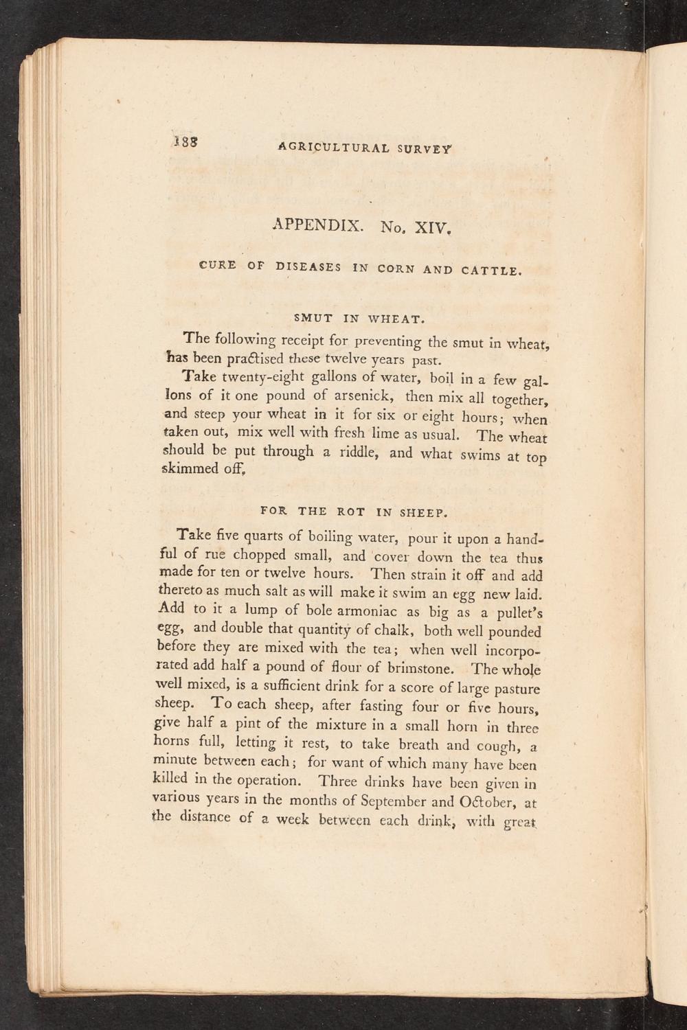 Take twenty-eight gallons of water, boil ina few gal- Jons of it one pound of arsenick, then mix all together, and steep your wheat in it for six or eight hours; when taken out, mix well with fresh lime as usual. The wheat should be put through a riddle, and what swims at top skimmed off,