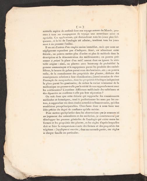 Pour. mettre quelqu’ordre dans les observations que je soumets ici au jugement des naturalistes et des médecins, je commencerai par développer les preuves générales de l'analogie qui existe entre les formes et tes propriétés des plantes, et les règles d’après lesquelles doit se faire la comparaison exacte des formes et des propriétés des végétaux: j’appliquerai ensuite, dans ma seconde partie, ces règles