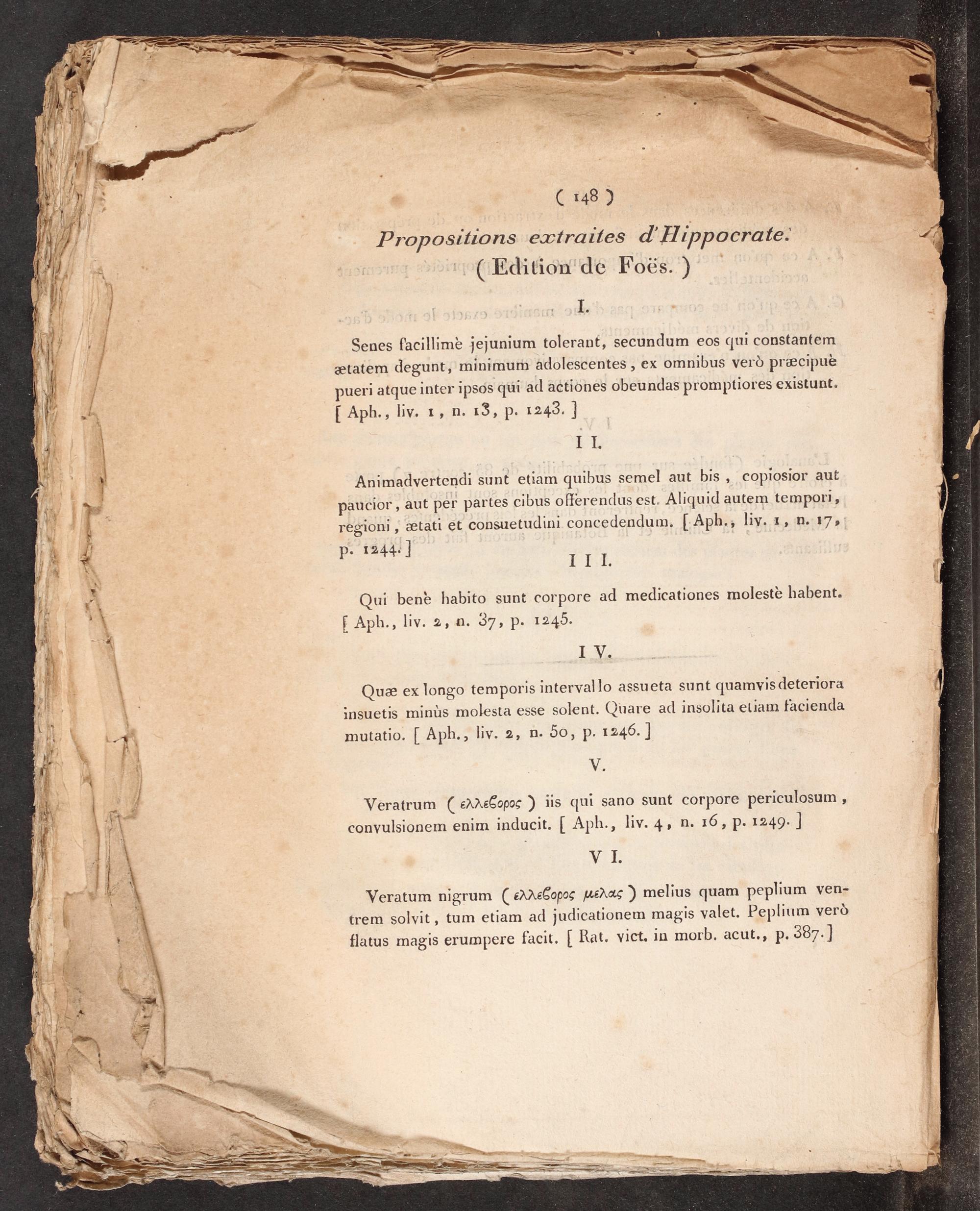 (148) Propositions extraites d'Hippocrate: ::(Edition de Foës.) I.