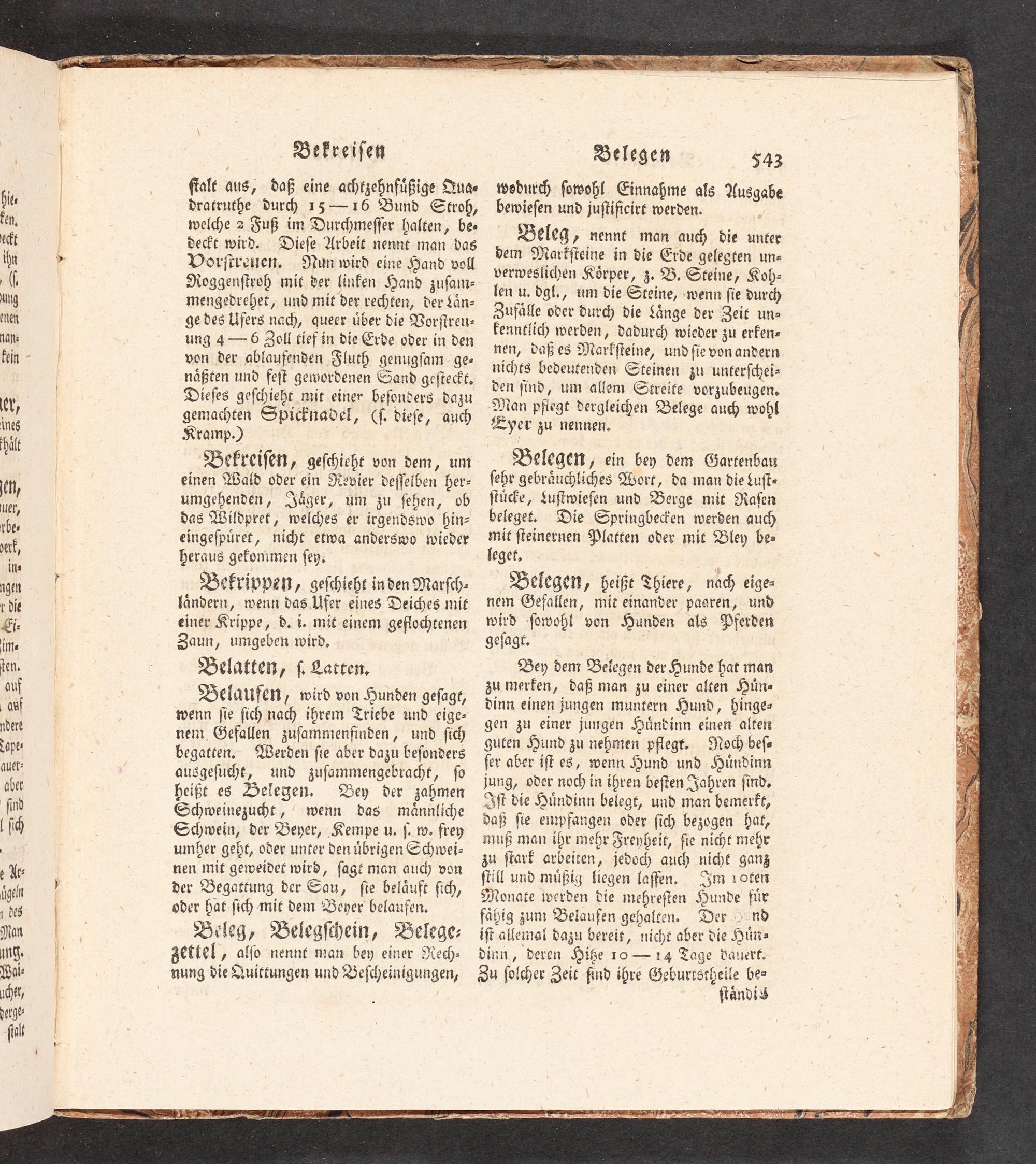 »Bekreiſen, geſchieht von dem, um einen Wald oder ein Revier deſſelben her- umgehenden, Jäger, um zu ſehen, ob das Wildpret, welches er irgendswo hin- eingeſpurer, nicht etwa anderswo wieder heraus gefommen ſey,