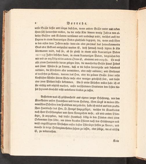 Außerdem was ich größtentheils aus eigener langer Erfahrung, von den Krankheiten unſrer Hausthiere und deren Heilung, ſchon längſt in meinen dko- nomiſchen Schriften dem Publikum mitgetheilet, habe ich vieles aus dem prakti» ſchen Handbuche des Hrn. D. Frenzel hinzugefüget, welcher die Kranfheiten nach. ihrer Entſtehungsart und ihrem Kennzeichen mehr, als viele andere Thliep- ärzte„. ſo angegeben, daß dieſes Handbuch billig. ür den. Händen eines jeden Oekonomen ſeyn ſollte, um feinen kranken Thieren nach den Erfahrungen und wohl eingeſchlagenen Verſuchen unſrer beſten Thierärzte helfen zu können, Und