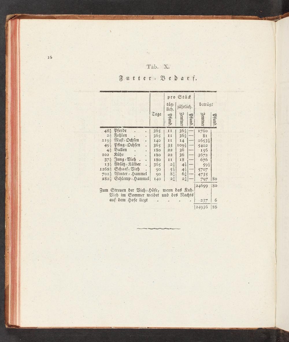 T32b..020 Ft FeS Bed bfr. pro StüF|- Tage| 8| VW|8) VW|2 a ES 1 Se ZU wie E18|S] 27.45 483 Pferde 365| 11[ 36E|--| 1760 22 Fohlen. 365| IL| 36Xi-- 81x 1193 Maſt- Ochſen 140| I1| 14|--| 1653Z 493 Pflug- Ochſen 365| 33 l1093|--| 5402 4* Bullen. I80| 22| 36|--|- 156 102 Kühe 180| 22| 36|--| 3672 BIE Jung- Vieh„| T80 Y EL| LS:== 7.676 T3+ Abſäß- Kälber.| 365 23 Z|- 59% 1268* Schaaf: Vieh gO 5SE| 43|--| 5707 7012 Winter.- Hammel 90 S7 Z|-=1. 473 2825 Schlemp- Hammel] 140 22| 22|--| 797-|8o [2469 4699 1802 Zum Streuen der Vieh- Höfe, wenn das Kuh- Vieh im Sommer weidet und des DI auf-dem Hofe liegt 227.150 24936 186