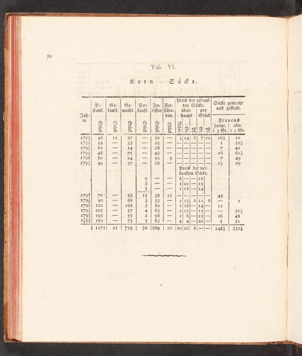 || Preis der gekauf-|-.. | B2-| Ge-| Ge-| Ver-| Zer-|Ver-, ten Säcfe.|| Säcke gemacht 1 ſtand.| kauft.|macht.] kauft. jriſſen|ſchie-] über-| pro und geflickt. Jah den.| haupt| Stück “ 2 SG| 4 Sees 22407 DNN FERIIS EHE: 2:%| N| M) S|(S|(SS|2(Zja3Gr.ja2Gr. 17851..146..: I 27.1 Zei 1 31241 617 180187 465.41--40 17 SG 4 Ii om hl BB ans 2 Beih He ee mimen R 312 17021162== 14--| 28|=|-|=|=-|--|-- 7 41 1792| 48|=| 75|=| 43|=|-|--|-|--|--| 16 612 17921. Bd= 4.24 4... 90, 1... 1712 EFG RO/D7SE[1-49 17931. 49. 47 6 46437 10077| 26 1 754|=| 1 ll 5 023 29 Preis der ver- kauften Säcke. 91== k=| 61=|=-(a6 3 BE NA M ANZ TIT(== 01:5 Bz Ha 1 ET 01= 8T24;0 IRON LO I TETE 1 OSS MAHL 41 1 28 7(295|= 11 PE| 345| E795 90-1= 1.68 2 4.33:|==" 1 T1221 GlL21.60== F 1798| 122== 168 3.1 82|=| 1|r18|=-/14|---| 12 1794| 2205-0 5 2002207 4| 63|=| 2i12|--|15|--|-- 20L W703| 495: 55 2|98|-=-| 11! 6|-115|-| 16 48 1908) 250: 11 50 073 S|03. 0 I| MU 02011 m 3x | 1371| 11| 719| 32|569| 20|20|20| 6|--|--| 148%| 3323