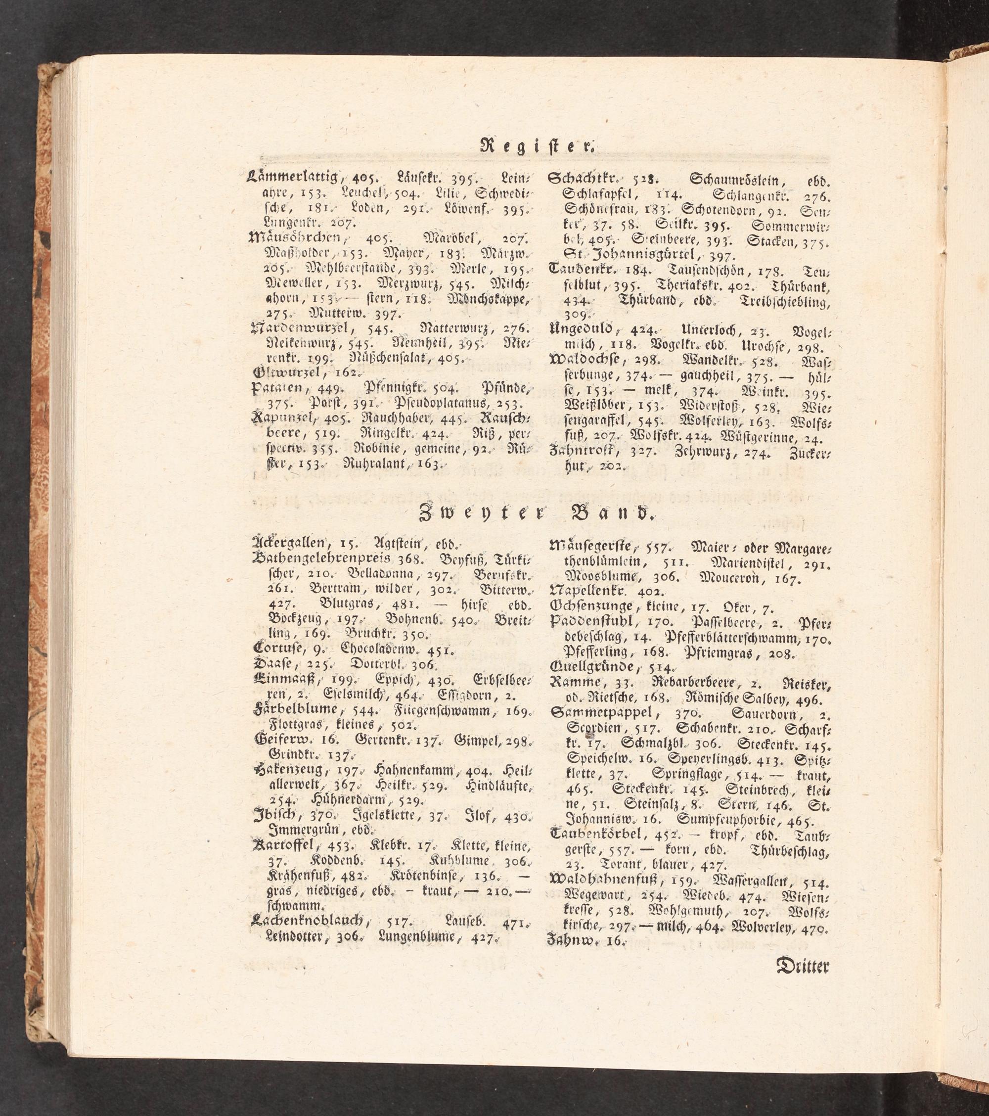 Waldochſe, 293. Wandelkr.- 528. Waſ“- ſerbunge, 374.= gauchheil, 375.=-- häl- ſe, 1534= melt; 3742: Woinkr.:: 3395. Weißlöber, 153.- Widerſtoß:, 523, Wie- ſengaraffel, 545. Wöotlferley, 163, Wolfs? fuß, 207.- Wolfskr. 424. Wüſtgerinne, 24