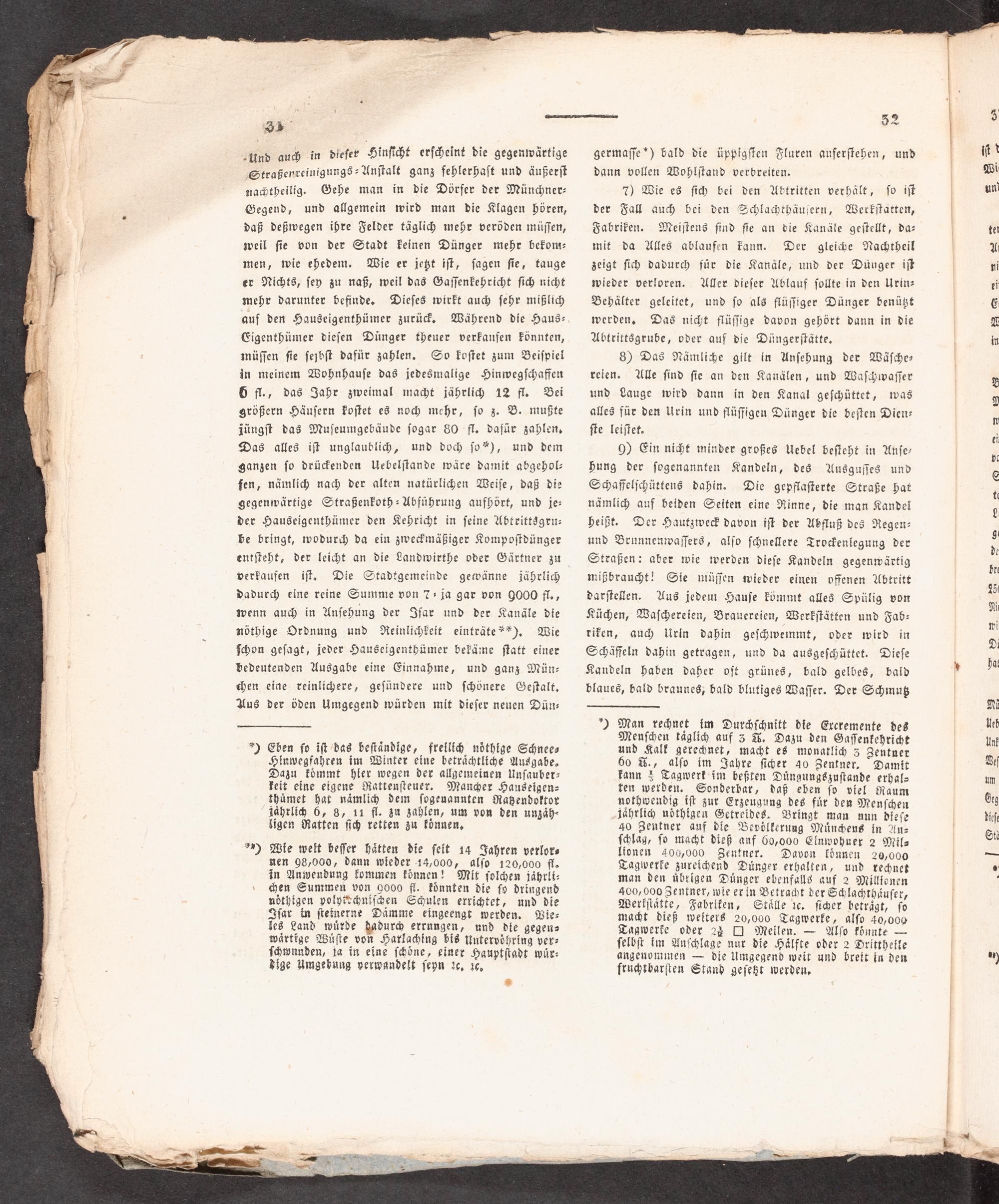34 „Und auch in dieſer Hinſicht erſcheint die gegenwärtige „Straßenreinigungs- Unſtalt ganz fehlerhaſt und äußerſt nadtbeilig. Gehe man in die Dörfer der Münchner- Gegend, und allgemein wird man die Klagen hören, daß deßwegen ihre Felder täglih mehr veröden müſſen, weil ſie von der Stadt keinen Dünger mehr bekom- men, wie ehedem. Wie er jeßt iſt, ſagen ſie, tauge er Nichts, ſey zu naß, weil das Gaſſenkebricht ſich nicht mehr darunter befinde« Dieſes wirkt auch ſehr mißlich