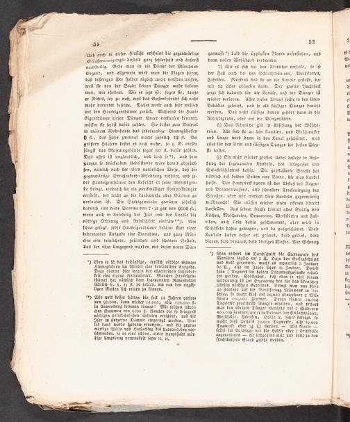 "?) Man rechnet im Durchſchnitt die Excremente des Menſchen täglich auf 3&. Dazu den Gaſſenkehricht und Kalk gerechnet, macht es monatlich 3 Zentner 60&., alſo im Jahre ſicher 40 Zentner. Damit kann 3 Tagwerk im beßten Düngungszuſtande erhalz2 ten werden. Sonderbar, daß eben ſo viel Raum nothwendig iſt zur Erzeugung des für den Menſchen jährlich nöthigen Getreides. Bringt may nun dieſe 40 Zentner auf die Bevölkerung Münchens in?ly- ſchlag, ſo macht dieß anf 60,000 Einwohner 2 Mils lionen 4035,000 Zentner. Davon fönnen 20,000 Tagiwerke zureichend Dünger erhalten, und rechnet man den übrigen Dünger ebenfalls auf 2 Millionen 400,000 Zentner, wie er in Betracht der Schlachthäuſer, Werfſiätte, Fabriken, Ställe 1c. ſicher beträgt, ſo macht dieß weiters 20,006 Tagwerke, alſo 40,009 Tagwerke oder 22[] Meilen.-- Alſo könnte--- ſelbſt im Anſchlage nur die Hälfte oder 2 Drittheile angenommen-- die Umgegend weit und breit in den fruchtbarſten Stand geſeßt werden,