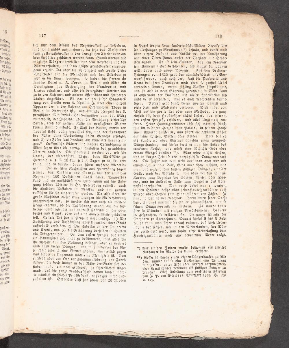 22) Beſſer iſt davon einen eignen Dängerhaufen zu bil den, immer auf ſo eine Ausleerung eine Miſchung mit Raſen, guter Erde oder Mergel vorzunehmen, vder fie mit Waſſer verdünnt als flüſſigen Dünger zu brauchen. Sieh Anleitung zum praktiſchen A>kerbau von I. P.+ von Sc<hwerz. Stuttgart 1825« S. 128 Y. 1209»