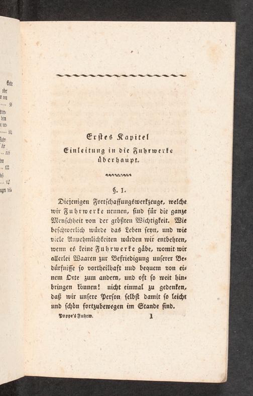 Diejenigen Fortschaffungswerkzeuge, welche wir Fuhrwerke nennen, sind fur die ganze Menschheit von der größten Wichtigkeit. Wie beschwerlich würde das Leben seyn, und wie viele Annehmlichkeiten würden wir entbehren, wenn es keine Fuhrwerke gäbe, womit wir allerlei Waaren zur Befriedigung unserer Be⸗ dürfnisse so vortheilhaft und bequem von ei⸗ nem Orte zum andern, und oft so weit hin⸗ bringen können! nicht einmal zu gedenken, daß wir unsere Person selbst damit so leicht und schön fortzubewegen im Stande sind.