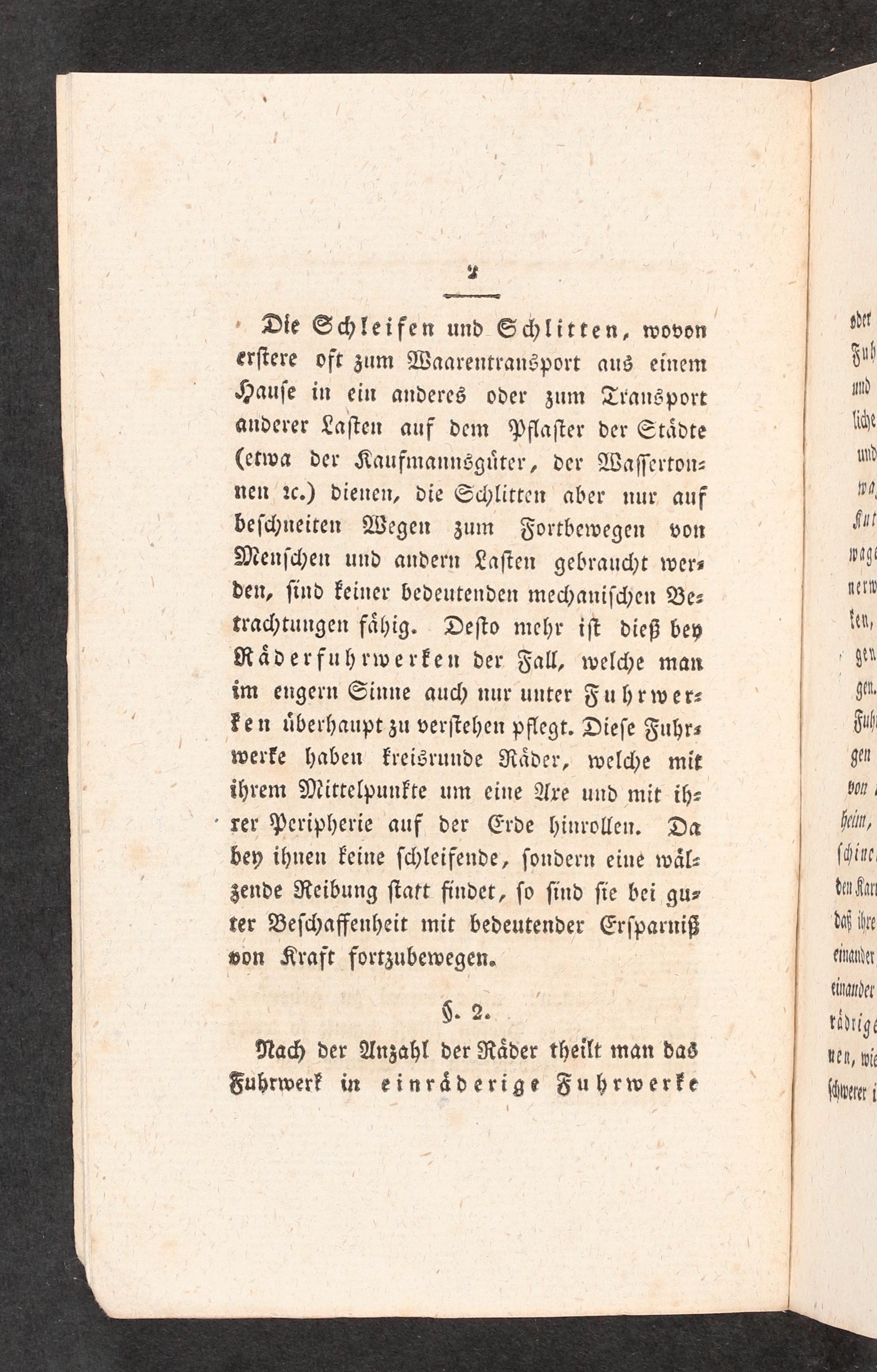 §. 2. Nach der Anzahl der Räder theilt man das Fuhrwerk in einräderige Fuhrwerke