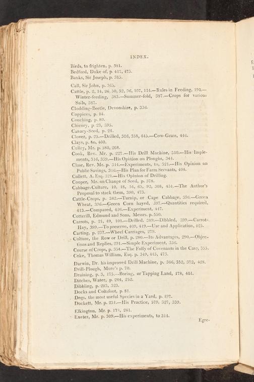 Cattle-Crops, p- 382.—Turnip, or Cape Cabbage, 396.—Green Wheat, 396.—Green Corn hayed, 397.—Quantities required, 413.—Compared, 426.—Experiment, 447.