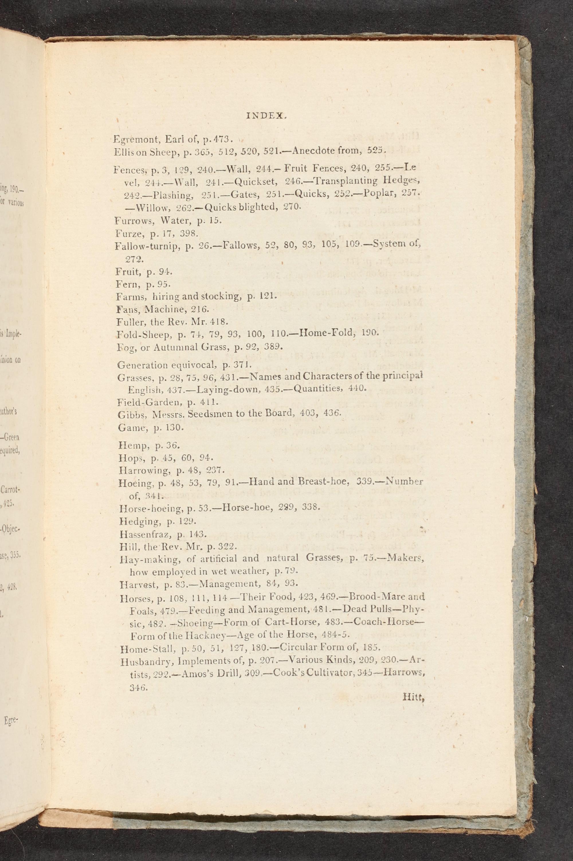 Fruit, p. 94. Fern, p. 95. Farms, hiring and stocking, p. 121. Fans, Machine, 216. Fuller, the Rey. Mr. 418. 8 np. Fold-Sheep, p. 74, 79, 93, 100, 110.—Home-Fold, 190. Kog, or Autumnal Grass, p. 92, 389.