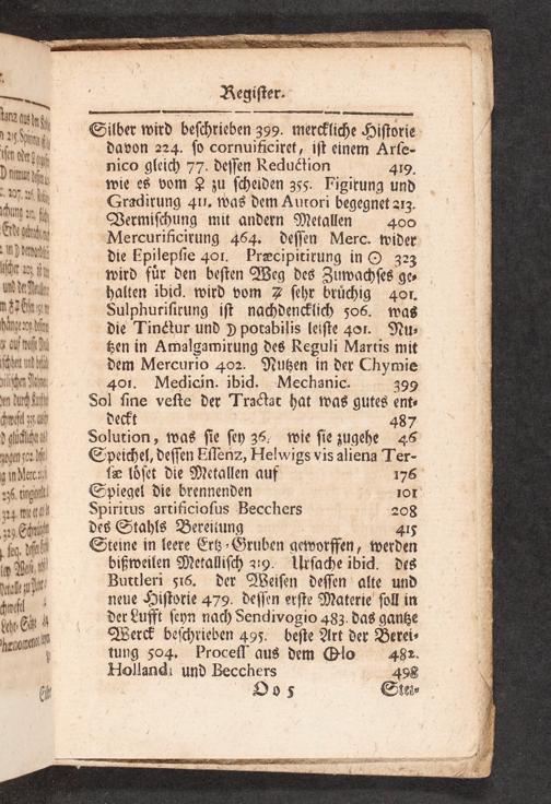 Sn Mercurificirung 464. dessen Merc. wider „ die Epilepsie 401. Præcipitirung in O 323 Ihn 2 fn wird für den besten Weg des Zuwachses ge⸗ R halten ibid. wird vom 7 sehr brüchig 401. E Sulphurisirung ist nachdencklich 566. was Hunrdfn die Tinétur und Y potabilis leiste 40. Nu⸗ DILAI tzen in Amalgamirung des Reguli Martis mit shet wiü dem Mercurio 402. Nutzen in der Chymie lchn Mer 401. Medicin. ibid. Mechanic. 399 n duch H Sol sine veste der Tractat hat was gutes ent⸗ Rvist ut deckt 487 LLIII Solution, was sie sey 36. wie sie zugehe 46 oan o M Speichel, dessen Ellene, Helwigs vis aliena Ter- dler se löset die Metallen auf 176 256 irpill Spiegel die brennenden 101 Spiritus artificiosus Becchers 208 329 Sürht des Stahls Bereitung 4¹5⁵ 10 M Steine in leere Ertz⸗Gruben geworffen, werden MWW bißweilen Metallisch 319. Ursache ibid. des uld Buttleri 516. der Weisen dessen alte und uft 44 neue Historie 479. dessen erste Materie soll in 1960 der Lufft seyn nach dendivogio 483. das gantze 2** Werck beschrieben 495. beste Art der Berei⸗ hen tung 504. Process aus dem Olo 482.