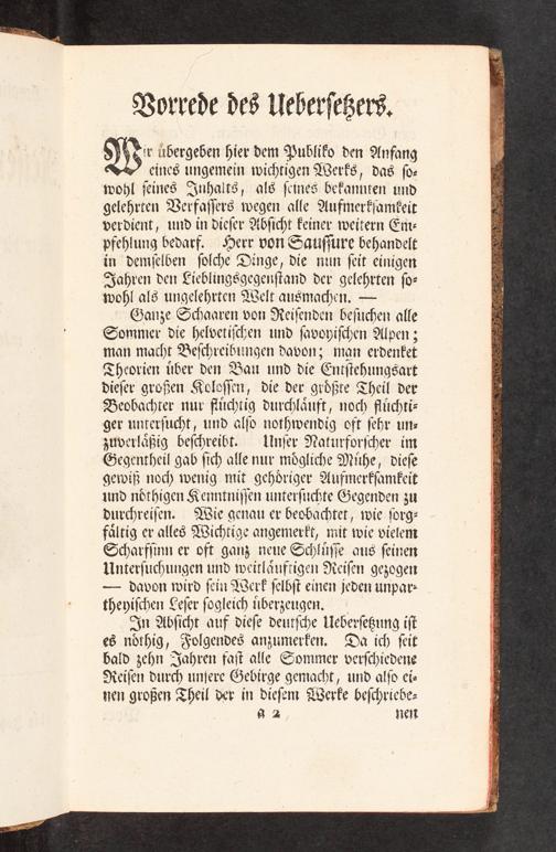 W'iô übergeben hier dem Publiko den Anfang eines ungemein wichtigen Werks, das so— wohl seines Inhalts, als seines bekannten und gelehrten Verfassers wegen alle Aufmerksamkeit verdient, und in dieser Absicht keiner weitern Em— pfehlung bedarf. Herr von Saussure behandelt in demselben solche Dinge, die nun seit einigen Jahren den Lieblingsgegenstand der gelehrten so⸗ wohl als ungelehrten Welt ausmachen.—