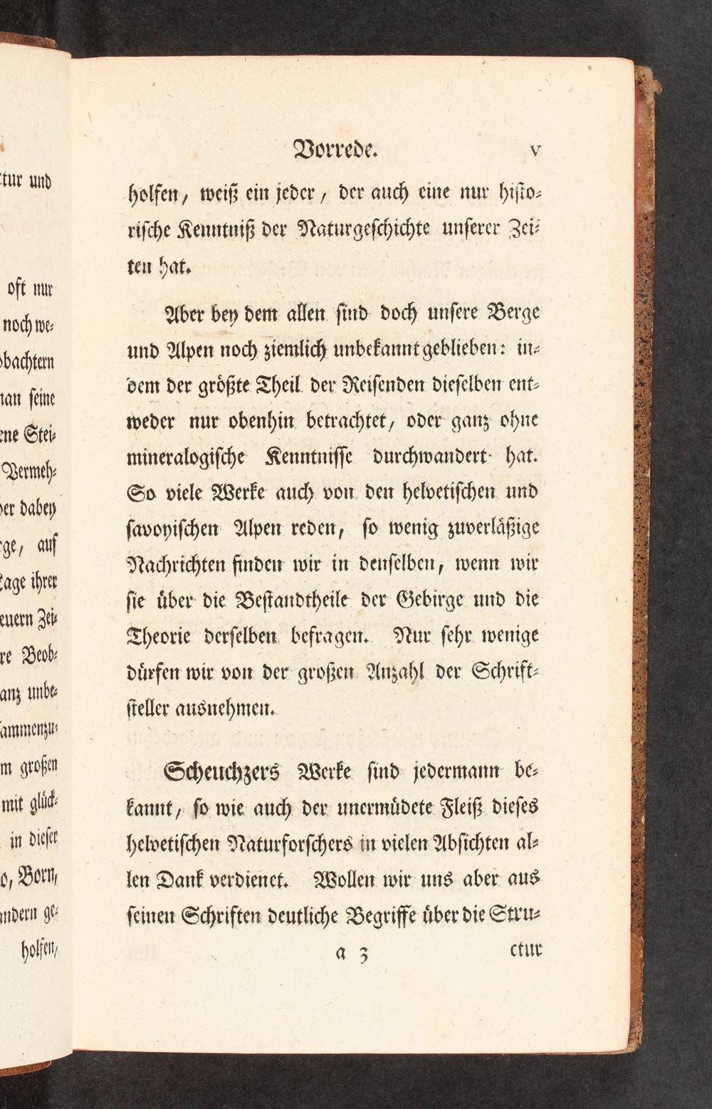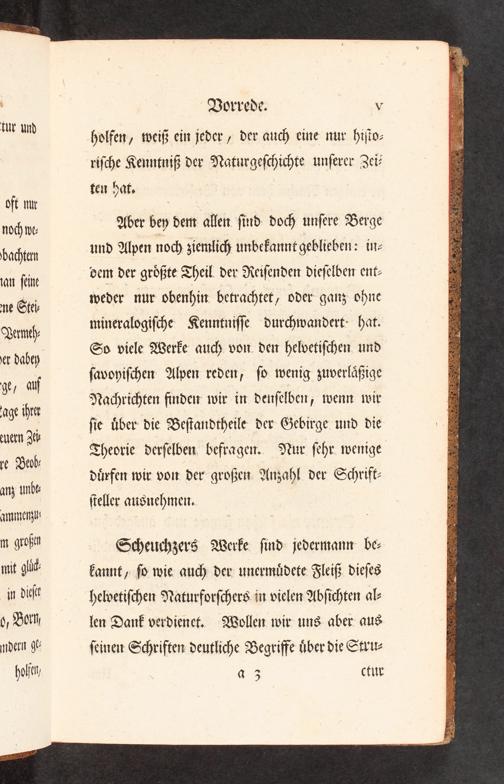 Aber bey dem allen sind doch unsere Berge und Alpen noch ziemlich unbekannt geblieben: in⸗ dem der größte Theil der Reisenden dieselben ent⸗ weder nur obenhin betrachtet, oder ganz ohne mineralogische Kenntnisse durchwandert: hat. So viele Werke auch von den helvetischen und savoyischen Alpen reden, so wenig zuverläßige Nachrichten finden wir in denselben, wenn wir sie über die Bestandtheile der Gebirge und die Theorie derselben befragen. Nur sehr wenige dürfen wir von der großen Anzahl der Schrift— steller ausnehmen.
