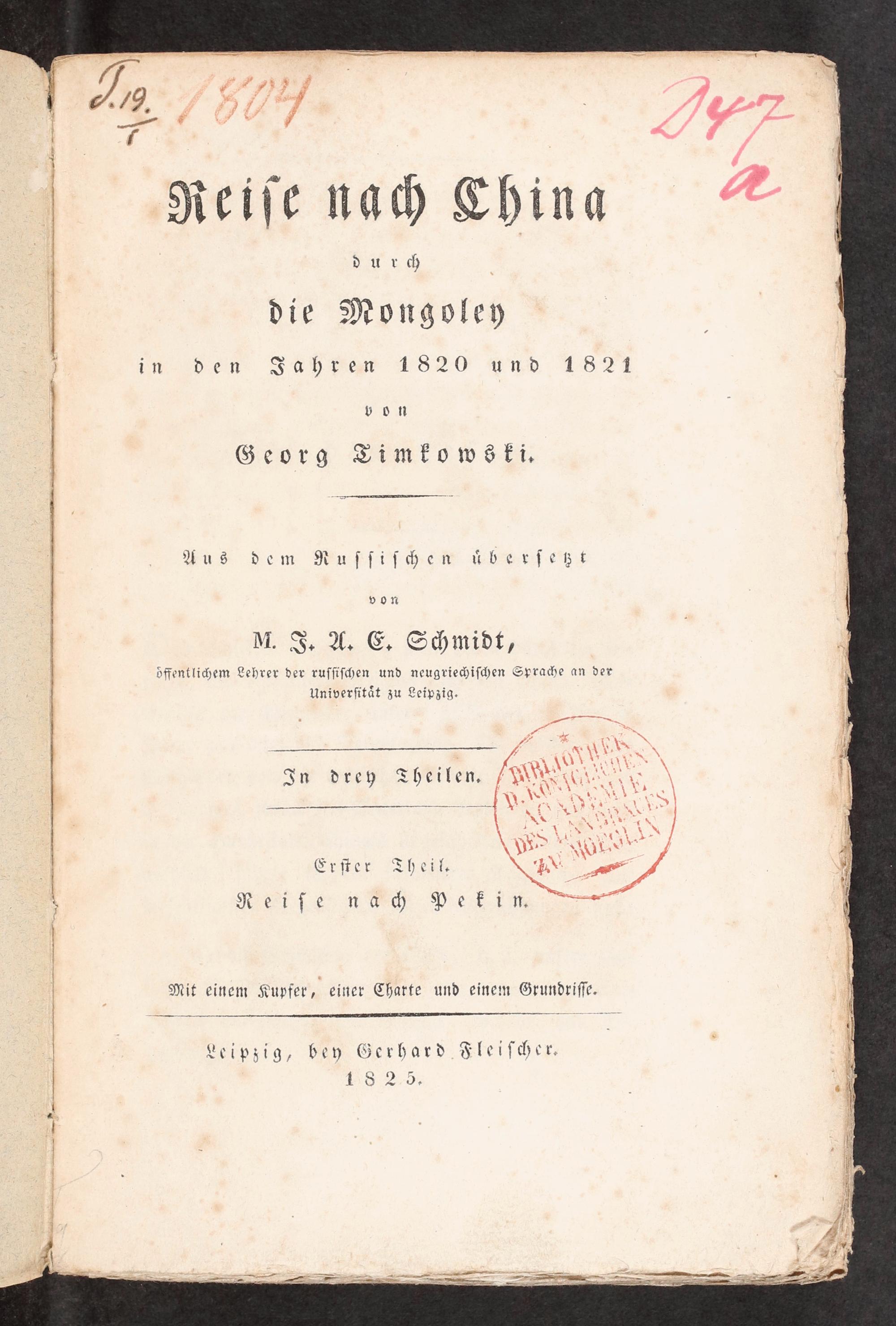 die Mongoley ö i den Jah en 1820 und 18 v o n