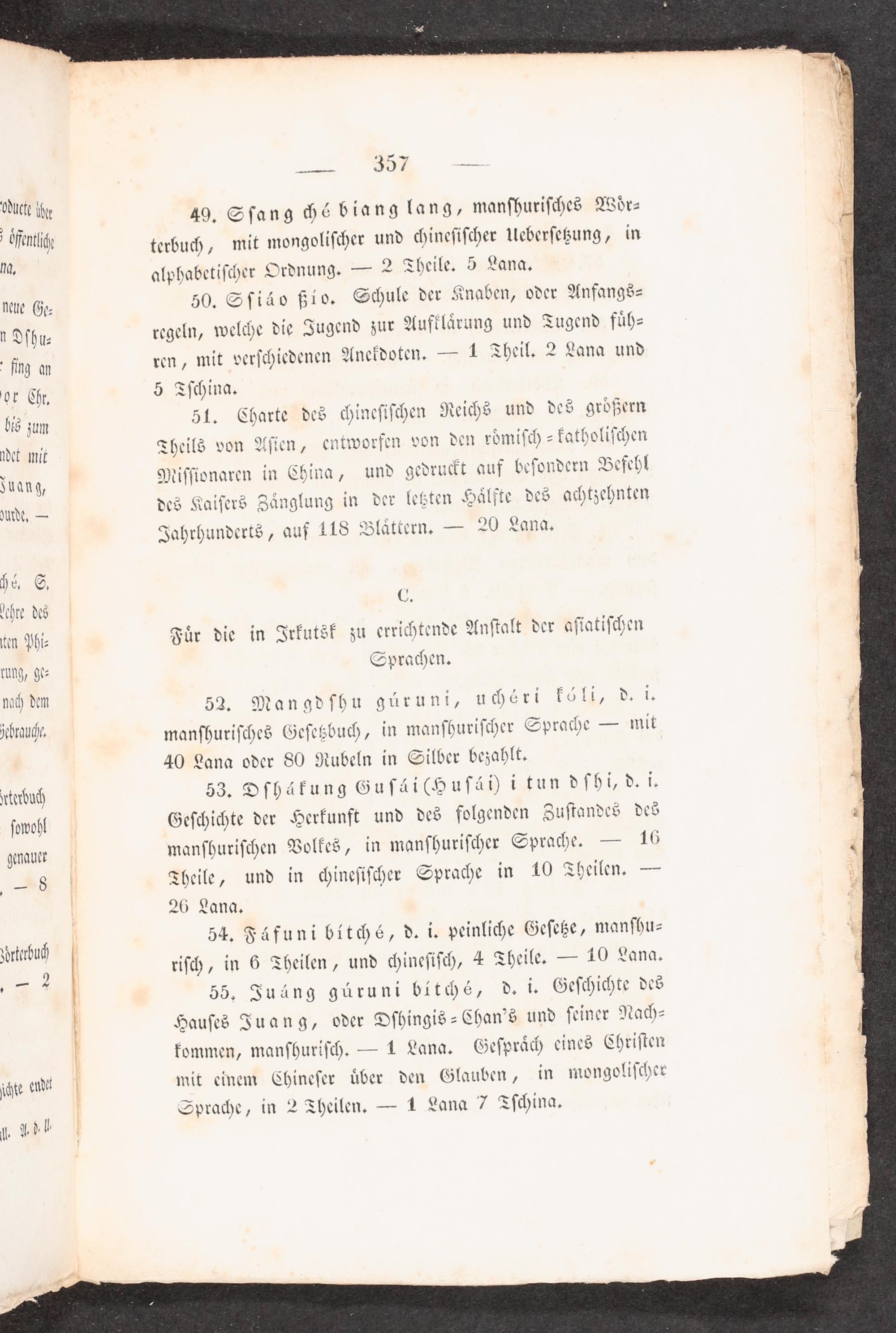 C. Für die in Irkutsk zu errichtende? lnstalt der asiatischen Sprachen.