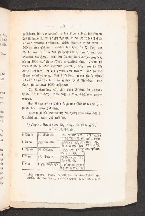 Hier folgt die Berechnung des chinesischen Gewichts in Vergleichung gegen das russische.