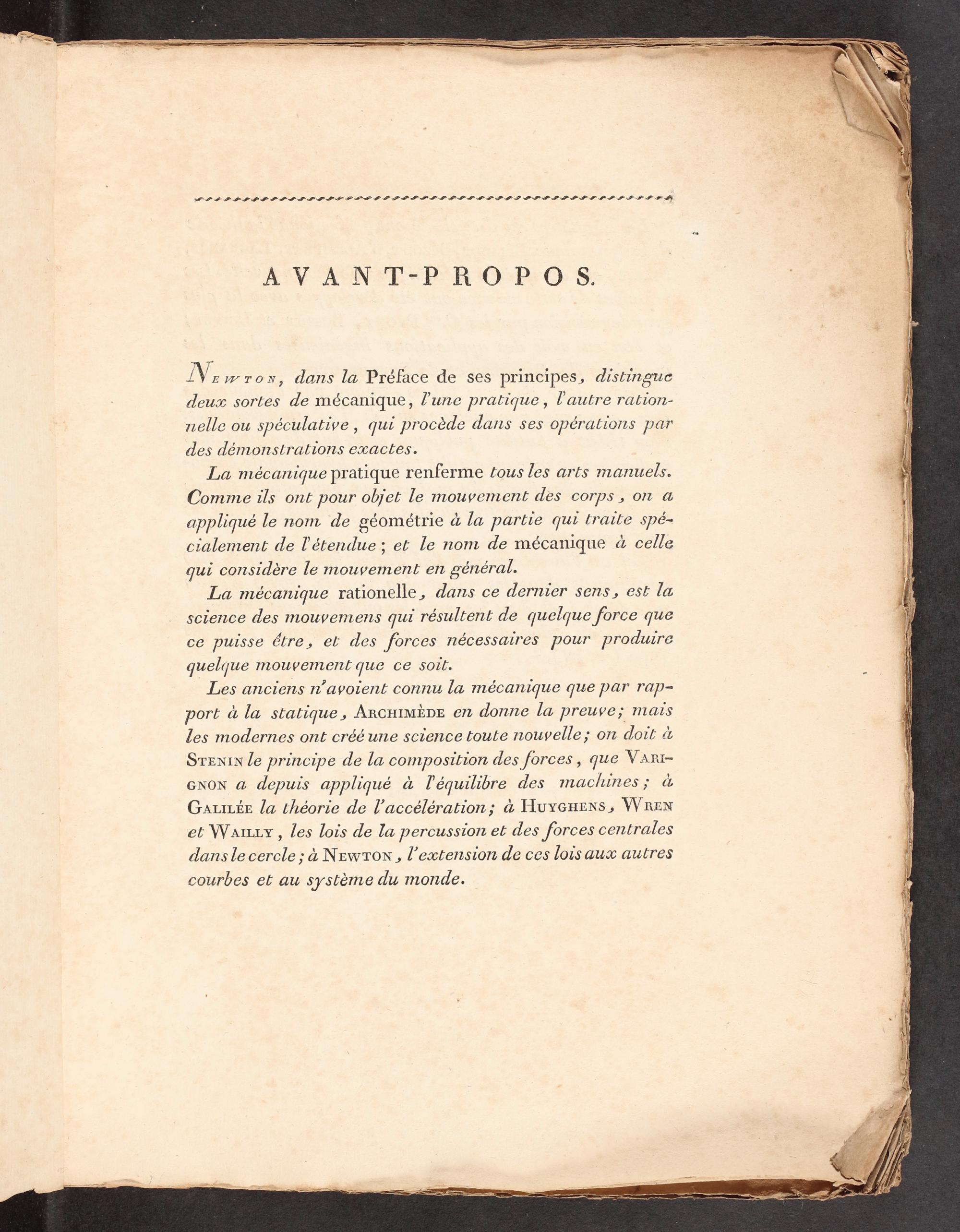 La mécanique rationelle, dans ce dernier sens, est la science des mouvemens qui résultent de quelque force que ce puisse étre, et des forces nécessaires pour produire quelque mouvement que ce soil.