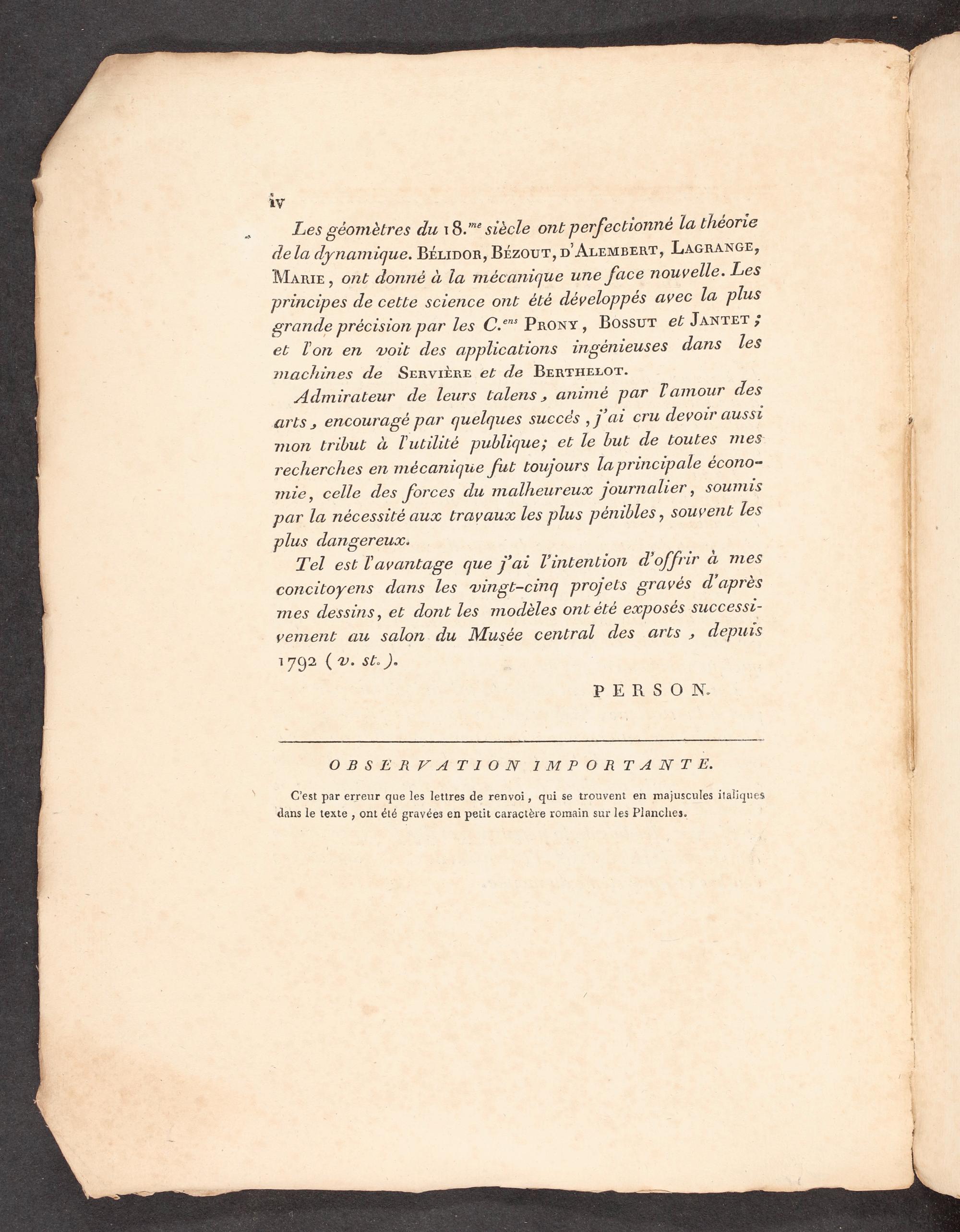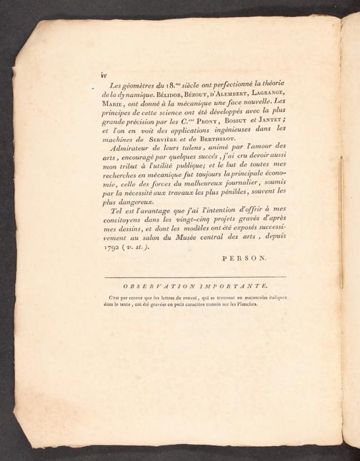 Les géomètres du 18." siècle ont perfectionné la théorie de la dynamique. Bérinor, BÉZOUT, D'ALEMBERT, LAGRANGE, Marre, ont donné à la mécanique une face nouvelle. Les principes de cette science ont été développés avec la plus grande précision par les C.° ProNx, BOssuT el JANTET; et lon en voit des applications ingénieuses dans les machines de SErvière et de BERTHELOT.