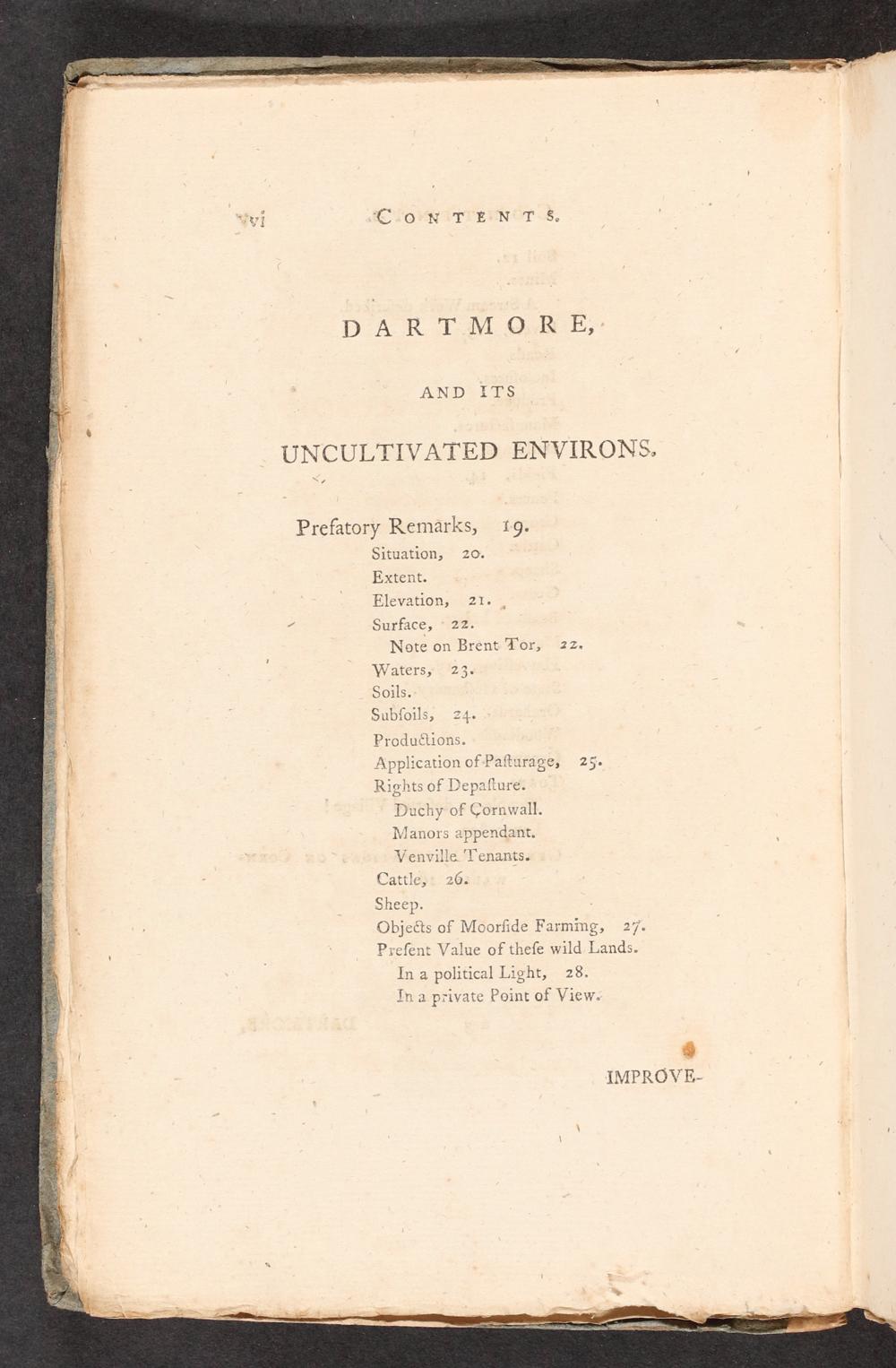 Application of Paſturage, 23. Rights of Depaſture. Duchy of Cornwall. Manors appendant. Venville Tenants. Cattle, 26. Sheep. Objects of Moorſide Farming, 27. Preſent Value of theſe wild Lands. In a political Light, 28. In a private Point of View.