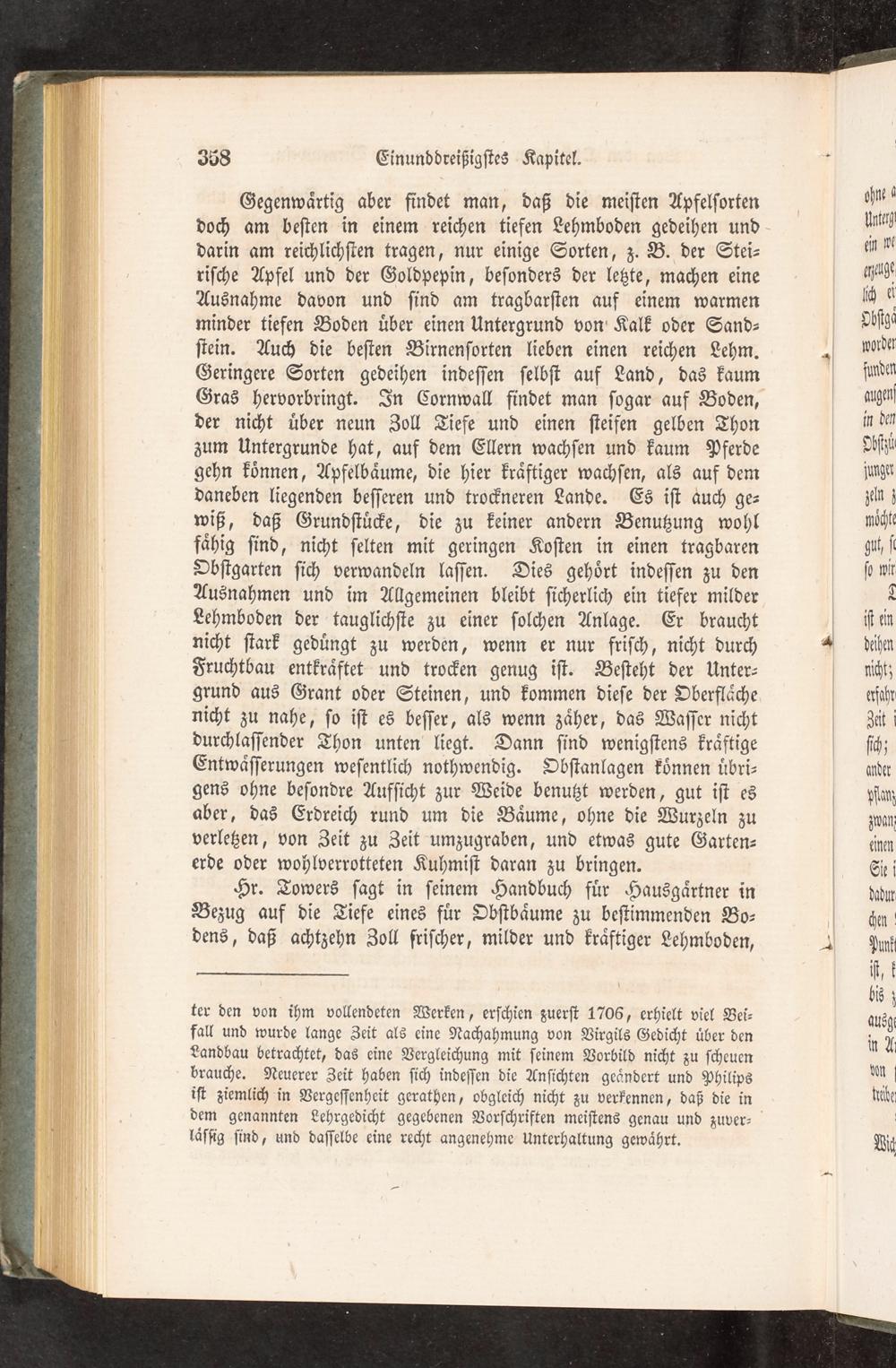 ter den von ihm vollendeten Werken, erſchien zuerſt 1706, erhielt viel Bei⸗ fall und wurde lange Zeit als eine Nachahmung von Virgils Gedicht uͤber den Landbau betrachtet, das eine Vergleichung mit ſeinem Vorbild nicht zu ſcheuen brauche. Neuerer Zeit haben ſich indeſſen die Anſichten geaͤndert und Philips iſt ziemlich in Vergeſſenheit gerathen, obgleich nicht zu verkennen, daß die in dem genannten Lehrgedicht gegebenen Vorſchriften meiſtens genau und zuver⸗ laͤſſig ſind, und daſſelbe eine recht angenehme Unterhaltung gewaͤhrt.