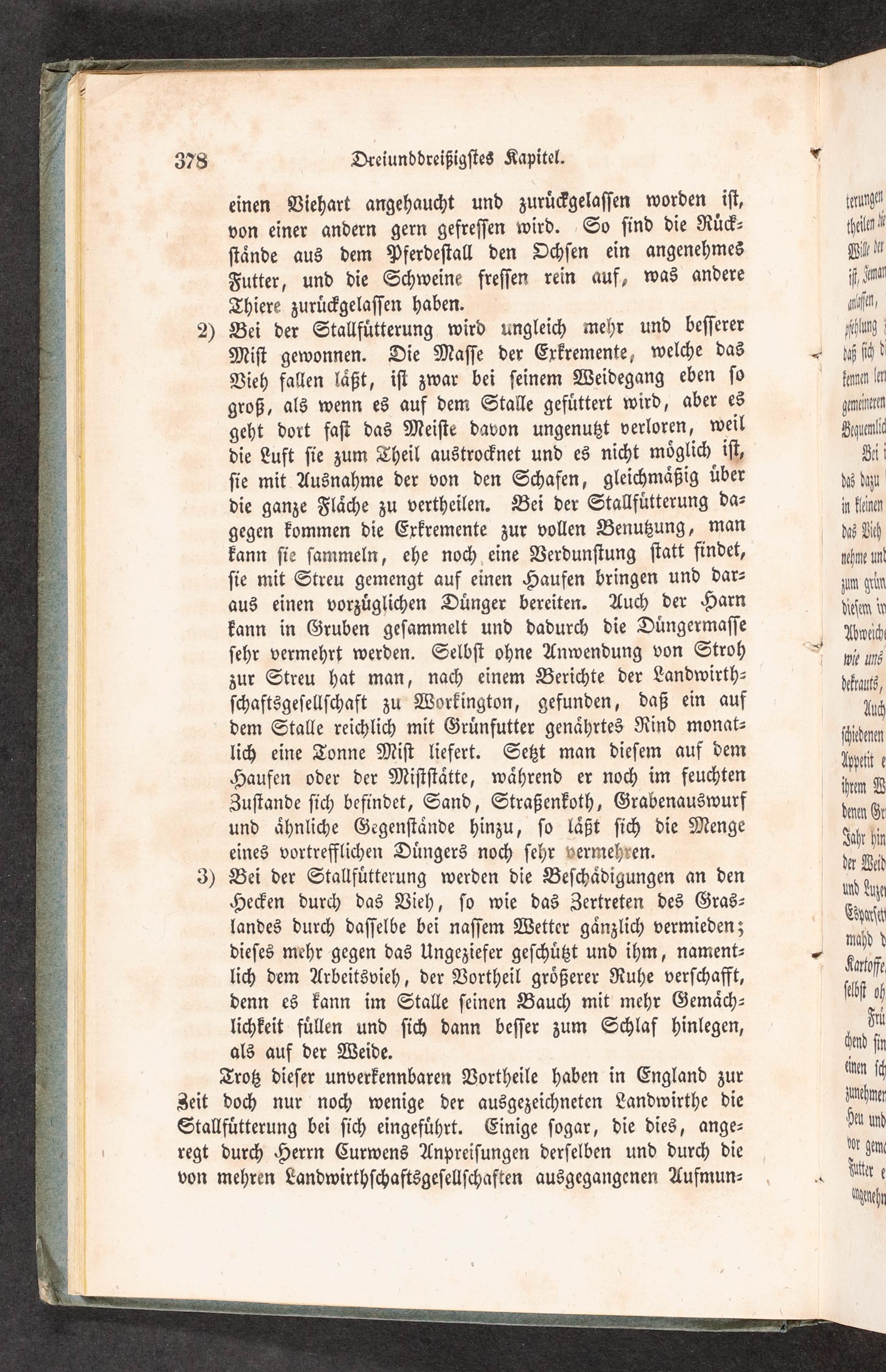 2) Bei der Stallfuͤtterung wird ungleich mehr und beſſerer ftoung Miſt gewonnen. Die Maſſe der Exkremente, welche das ß ichd Vieh fallen laͤßt, iſt zwar bei ſeinem Weidegang eben ſo nan le groß, als wenn es auf dem Stalle gefuͤttert wird, aber es gmintun