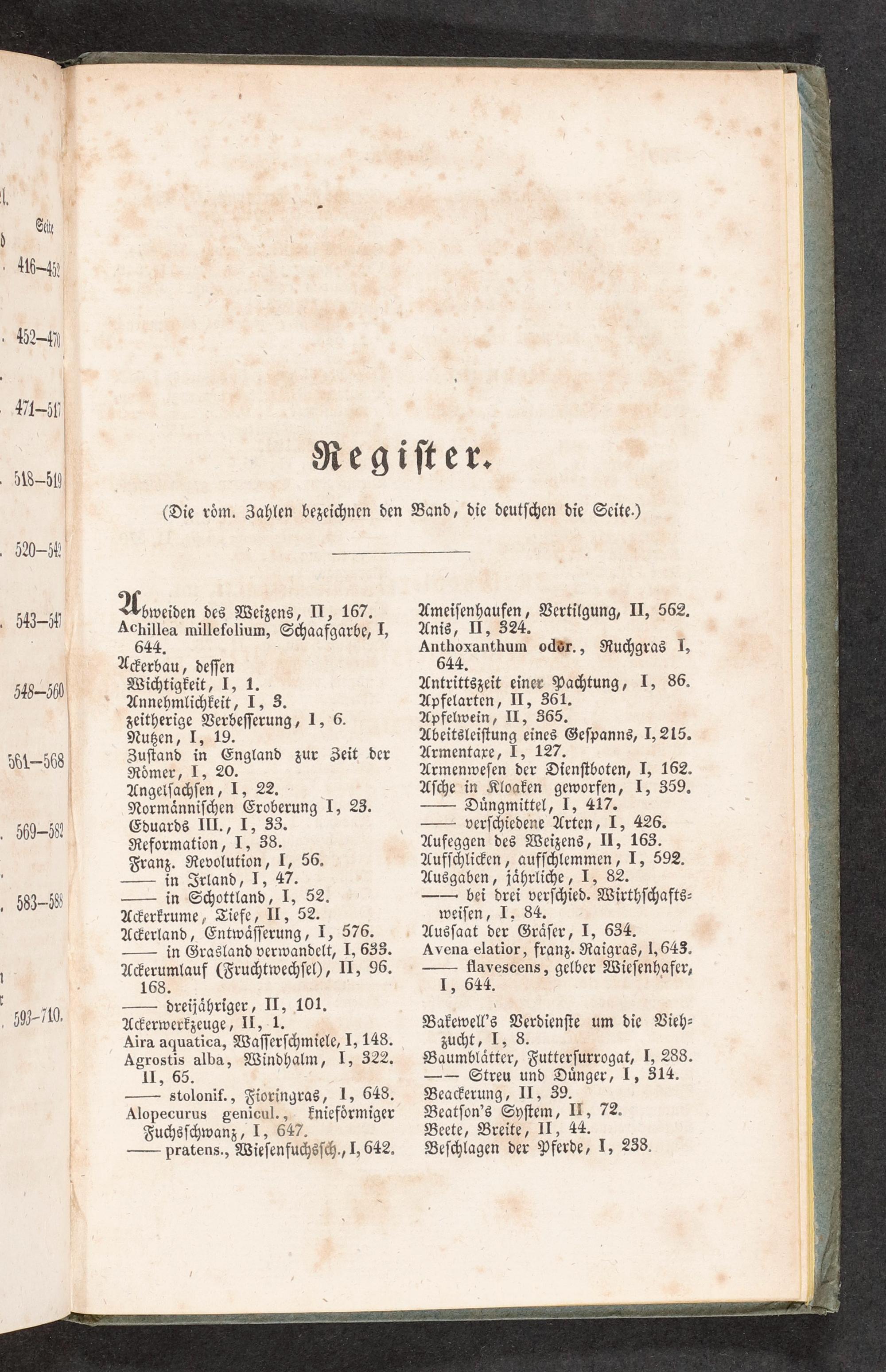 d 446- . 452— 9, b rn . 8.a Regiſter. , eſa .520- 54 549-=g Abweiden des Weizens, II, 167. 1 Acles millefolium, Schaafgarbe, I, Ackerbau, deſſen 548.560 Wichtigkeit, I, 1. Annehmlichkeit, I, 3. zeitherige Verbeſſerung, 1, 6. Nutzen, I, 19. 1 p Zuſtand in England zur Zeit der dül 688 Roͤmer, I, 20. Angelſachſen, I, 22. Normaͤnniſchen Eroberung I, 23. 560— 580 Eduards III., I, 33. Reformation, I, 38. Franz. Revolution, I, 56. — in Irland, I, 47. . 583- 8— in Schottland, I, 52. Ackerkrume, Tiefe, II, 52. Ackerland, Entwaͤſſerung, I, 576. — in Grasland verwandelt, I, 633. Ackerumlauf(Fruchtwechſel), II, 96. . 168. 1 39=J10.— dreijaͤhriger, II, 101.