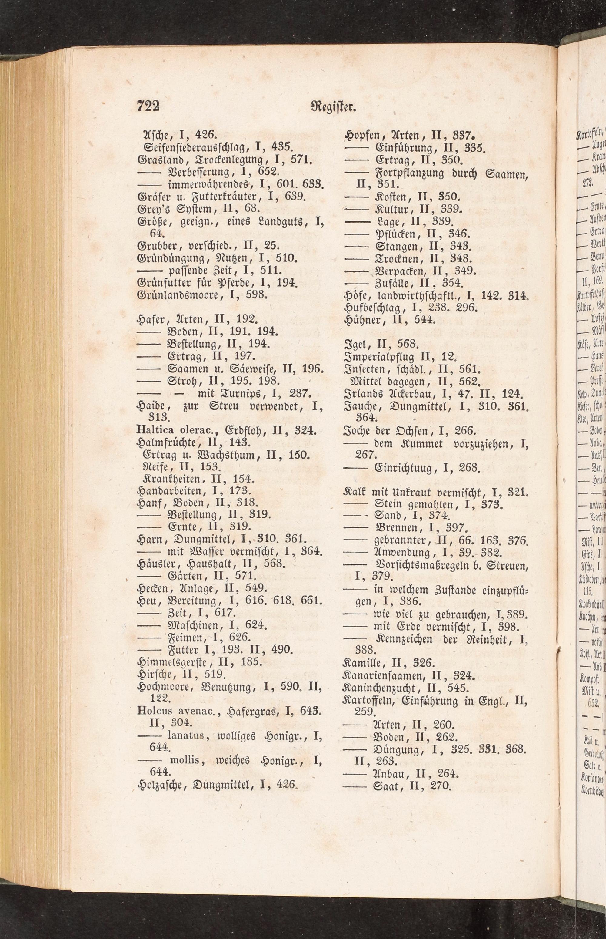 Kanarienſaamen, II, 324. Kaninchenzucht, II, 545. Kartoffein⸗ Einfuͤhrung in Engl., II,