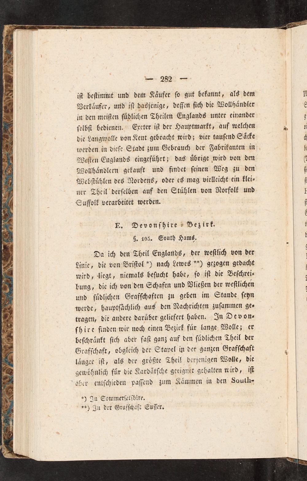 Da ich den Theil Englands, der weſtlich von der Linie, die von Briſtol*) nach Lewes*) gezogen gedacht wird, liegt, niemals beſucht habe, ſo iſt die Beſchrei⸗ bung, die ich von den Schafen und Vließen der weſtlichen und ſuͤdlichen Grafſchoften zu geben im Stande ſeyn