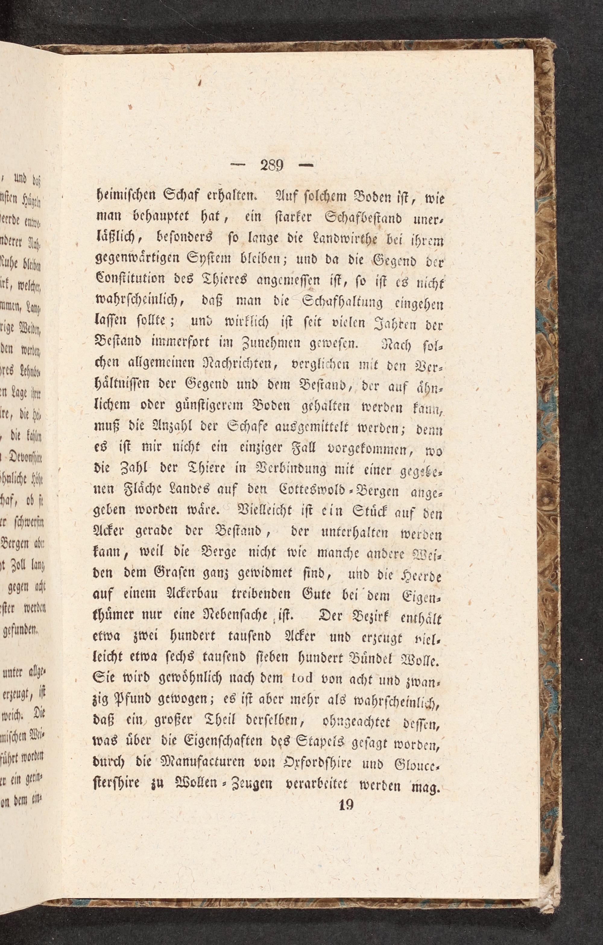 leicht etwa ſechs tauſend ſieben hundert Buͤndel Wolle. unter alge⸗ Sie wird gewoͤhnlich nach dem tod von acht und zwan⸗ ezeugt, ſi zig Pfund gewogen; es iſt aber mehr als wahrſcheinlich, weich Di daß ein großer Theil derſelben, ohngeachtet deſſen, niſchen Wi⸗ was uͤber die Eigenſchaften des Stapels geſagt worden, hrt wordn durch die Manufacturen von Oxfordſhire und Glouce⸗ e ein grr ſterſhire zu Wollen⸗Zeugen verarbeitet werden mag. on dem bſl 19