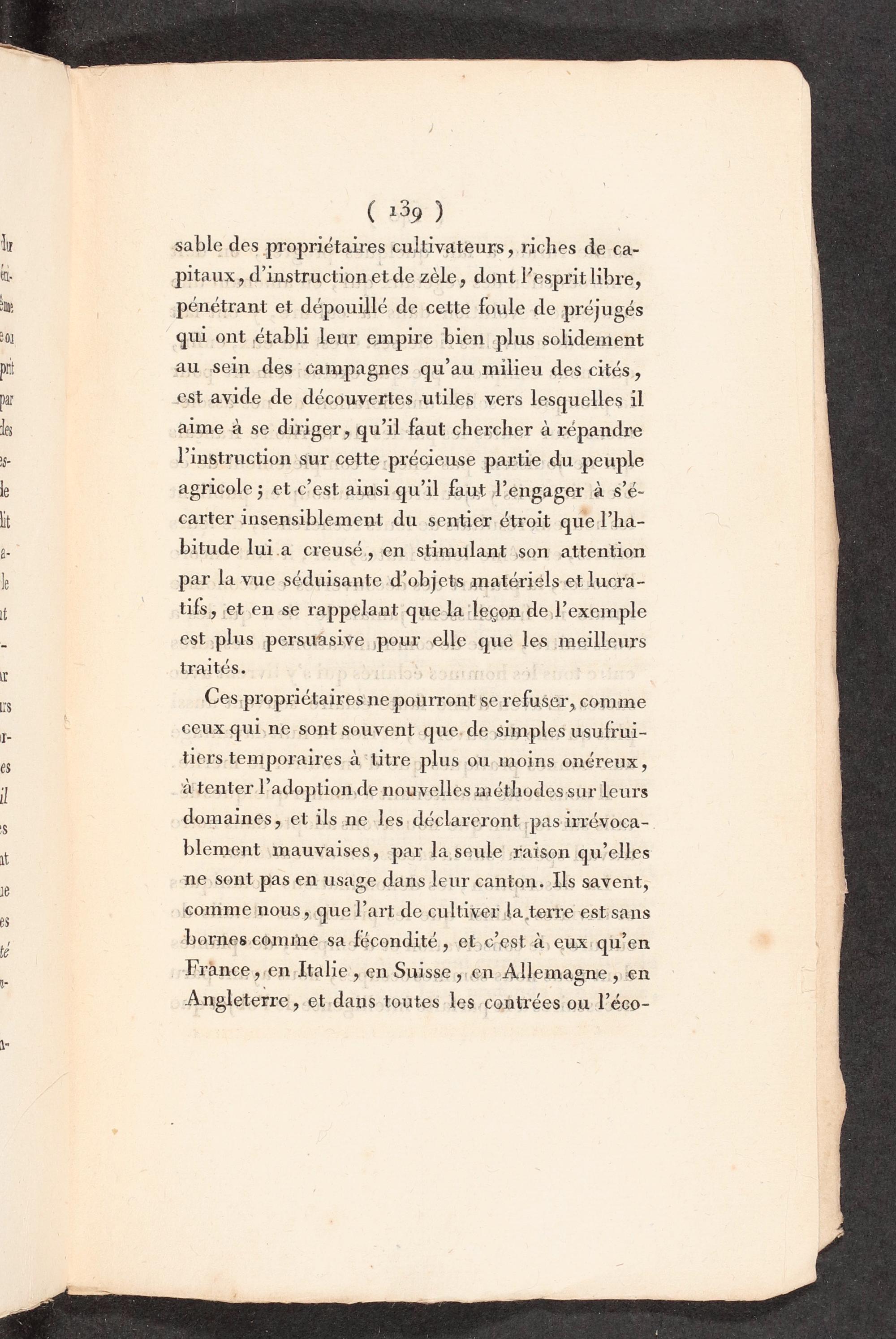 Ces:propriétairesne pourront se refuser, comme ceux qui,ne sont souvent que. de simples usufrui- tiers temporaires à‘titre plus ou moins onéreux, àtenter l’adoption.de nouvelles méthodessur leurs domaines, et ils ne les déclareront pas ixrévoca- blement mauvaises, par la seule raison qu’elles ne sont pas en usage dans leur canton..Ils savent, comme nous; que l’art de cultiver la terre estsans bornes comme sa fécondité, et.c'est à, eux qu'en France, en Italie, en Suisse, en Allemagne, en Angleterre,.et.dans toutes les contrées ou l’éco-