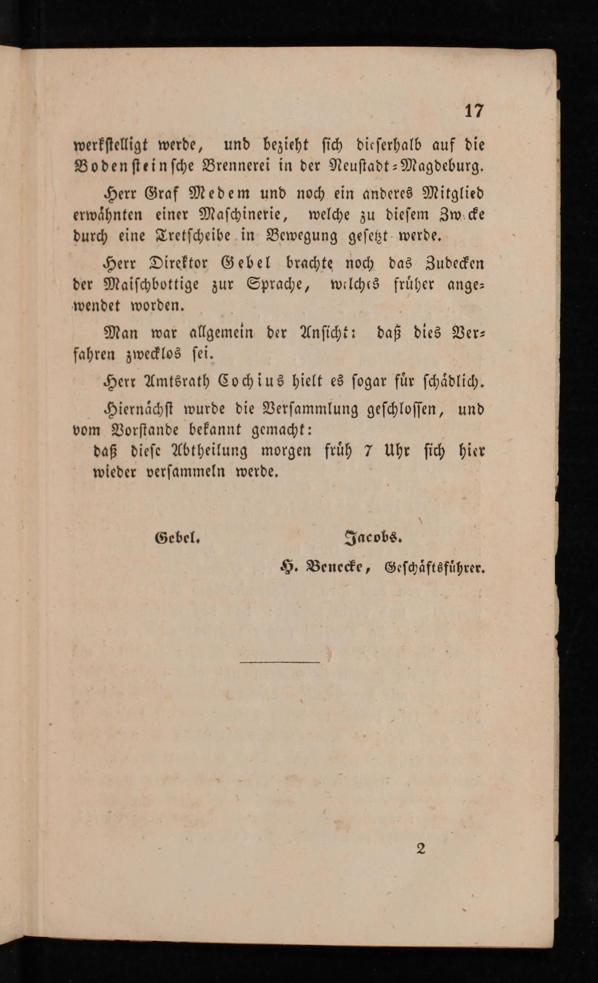 Gebel. Jacobs. H. Benecke, Geſchaͤftsfuͤhrer.