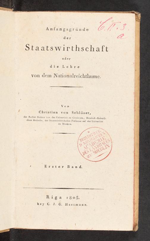 der Rechte Doktor von der Universität zu Göttingen, Russisch- Kaiserii- chem Hofrathe, der Staatswissenschaften Professor auf der Universität zu Moskwa,