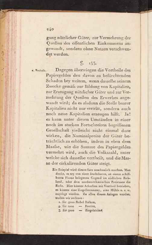 Ein Beispiel wird diesen Satz anschaulich machen. Man ı ji! denke, es sey von einer fruchtbaren, an einem schiff- Flılı baren Flusse belegenen Gegend im südlichen Ruls- IH)) land, oder dem nordamerikanischen Freistaate die i I Hi Rede. Hier könnte Ackerbau mit Vortheil betrieben, Fa es könnte eine Ziegelbrennerey, eine Mühle u. s. w.
