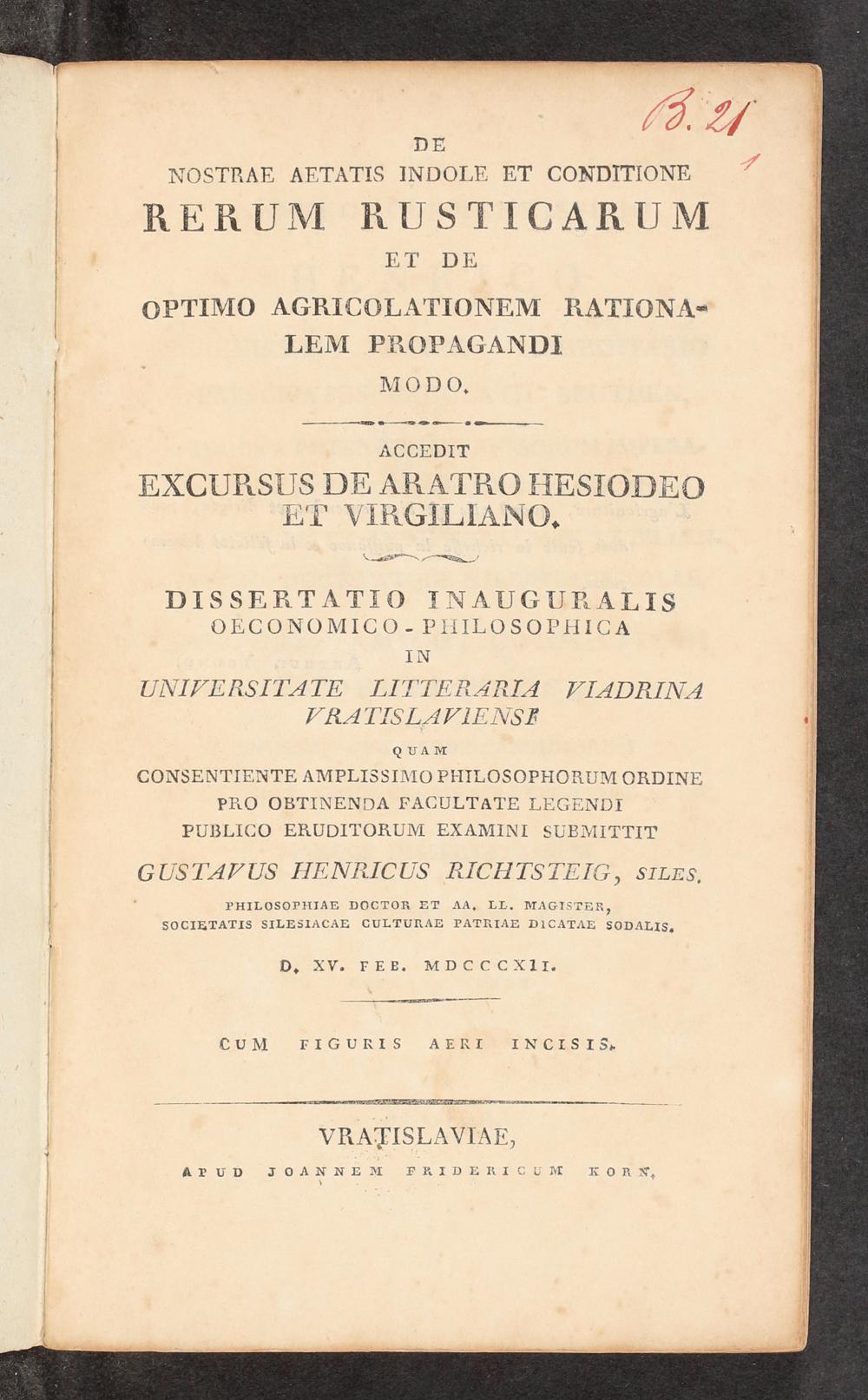 PHILOSOPHIAE DOcCToR ET AA. LE. MAGISTER, SocIETATIS sILESIACAE GUILTURAE PATRIAE DlCATAE SODALIS.