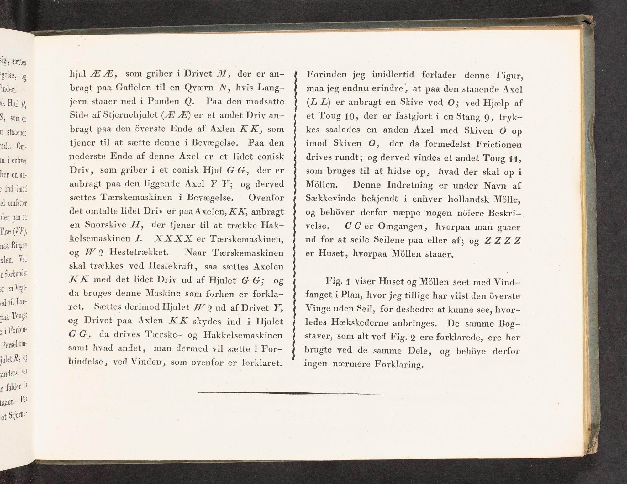 Forinden jeg imidlertid forlader denne Figur, maa jeg endnu erindre, at paa den staaende Axel (ZL L) er anbragt en Skive ved O; ved Hjælp af et Toug 10, der er fastgjort i en Stang 9, tryk- kes saaledes en anden Åxel med Skiven O op imod Skiven O,