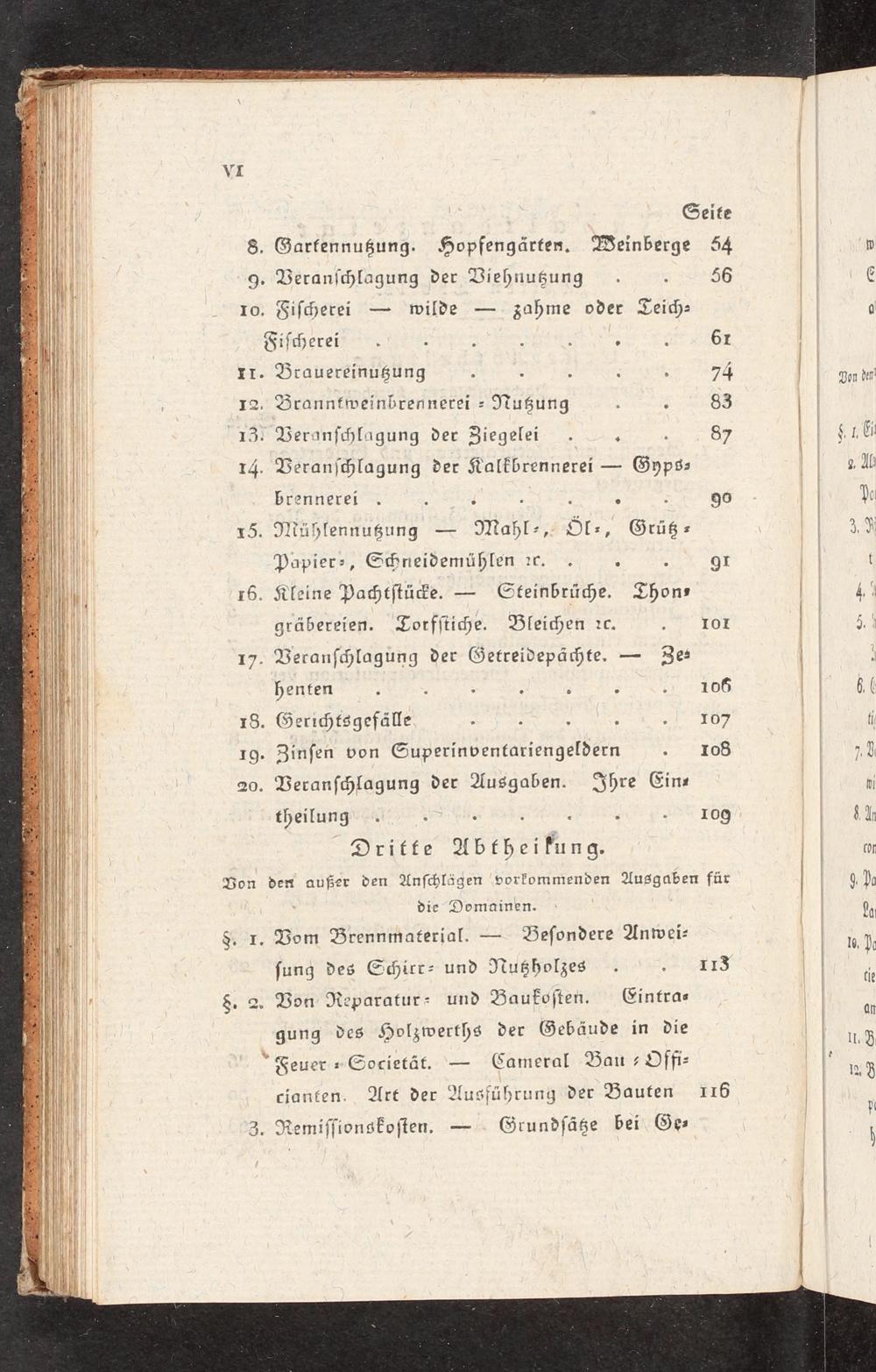 S8. I. Vom Brennmaterial.=- Beſondere Anwei- ſung des Schirr- und Nutholzes 8. 2. Bon Reparatur: und Baukoſten. WCintras-