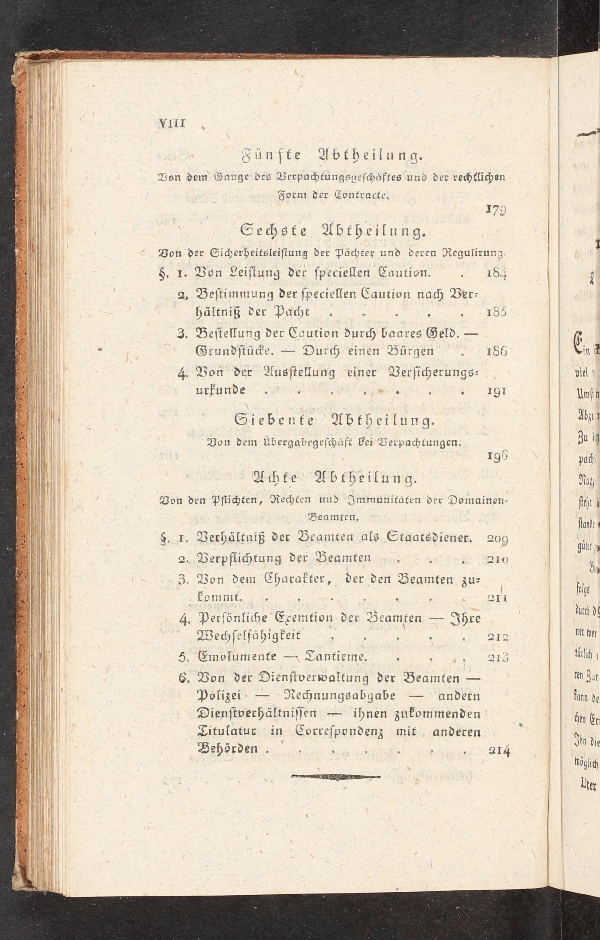 8. I- Bon Leiſtung der ſpeciellen Caution. 184 2, Beſtimmung der ſpeciellen Caution nach Ber- hältniß der Pacht.. Ä+ 21185 3. Beſtellung der Caution dur baares Geld.-- Grundſtü>e.= Dur< einen Bürgen*- 12186