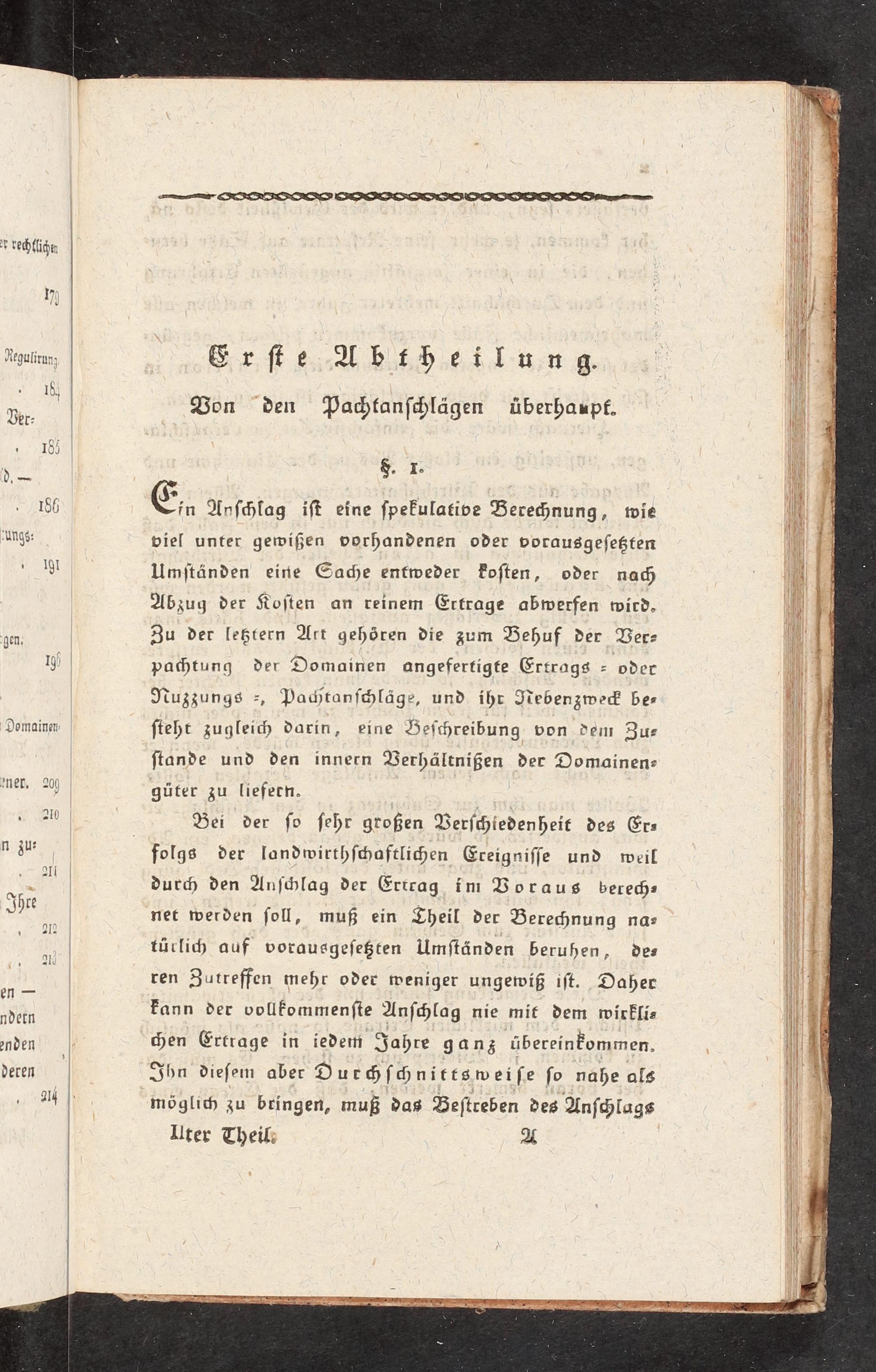 durc den Unſchlag der Ertcag im Voraus berech» net werden ſoll, muß ein Theil der Berechnung na- türlich auf vorausgeſeßten Umſtänden beruhen, des ren Zutreffen mehr oder weniger ungewiß iſt. Daher Fann der vollfommenſte Anſchlag nie mit dem wirfſis <Hen Ertrage in iedeti Jahre ganz übereinFommen. Ihn dieſem aber Dur<ſc<hnittsweiſe ſo nahe als möglich zu bringen, muß vas Beſtreben des Anſc<lags ÜUter Theil: A