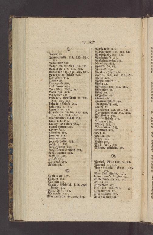 Marioneth 411. Marlborough 103. 140. 334. Marſchland, 253. 300. Marſchſchafe 276. Maſchinenweſen 362. Matching 173.