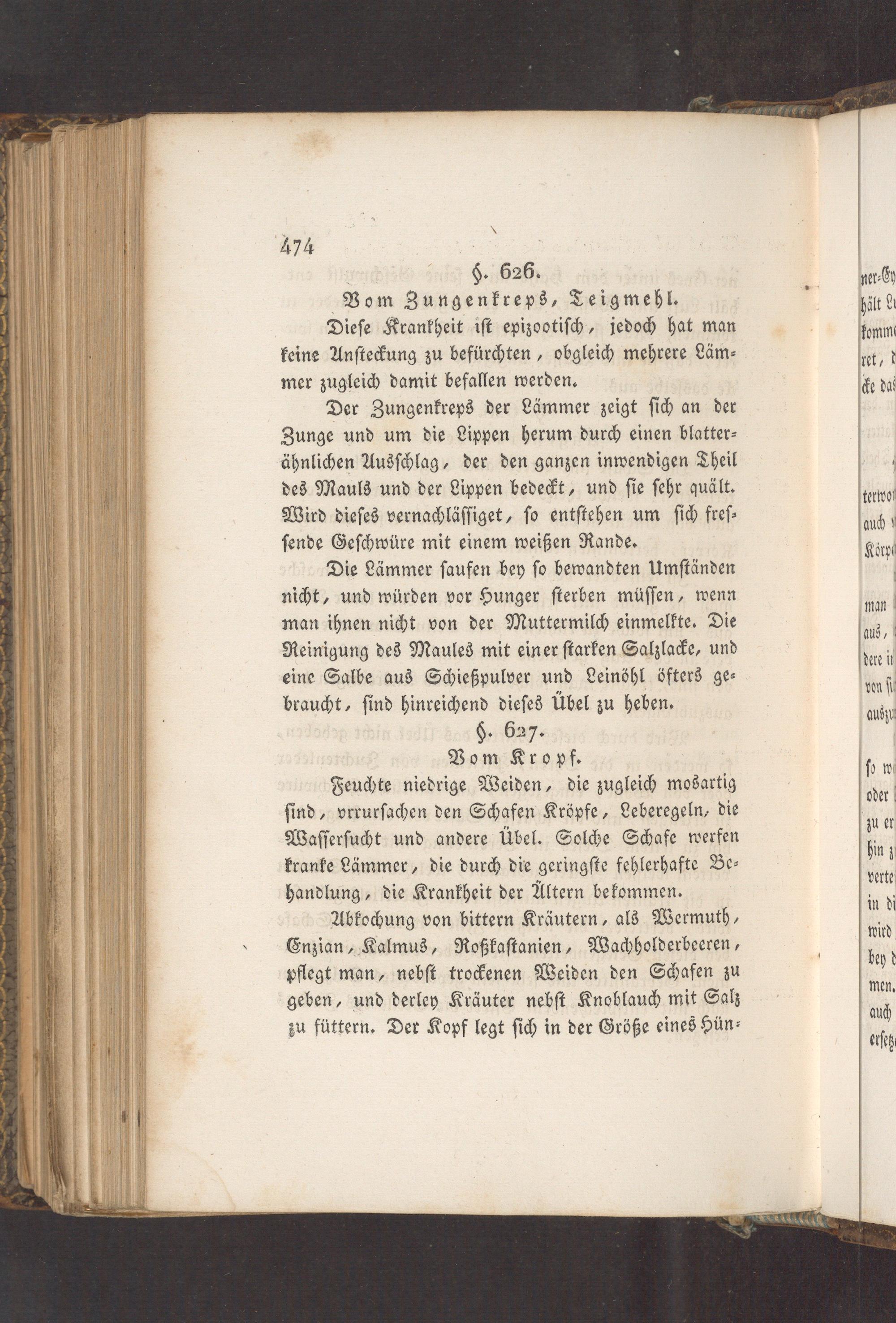 Abkochung von bittern Kräutern, als Wermuth, Enzian, Kalmus, Roßkaſtanien, Wachholderbeeren, pflegt man, nebſt trockenen Weiden den Schafen zu geben, und derley Kräuter nebſt Knoblauch mit Salz zu füttern. Der Kopf legt ſich in der Größe eines Hün⸗