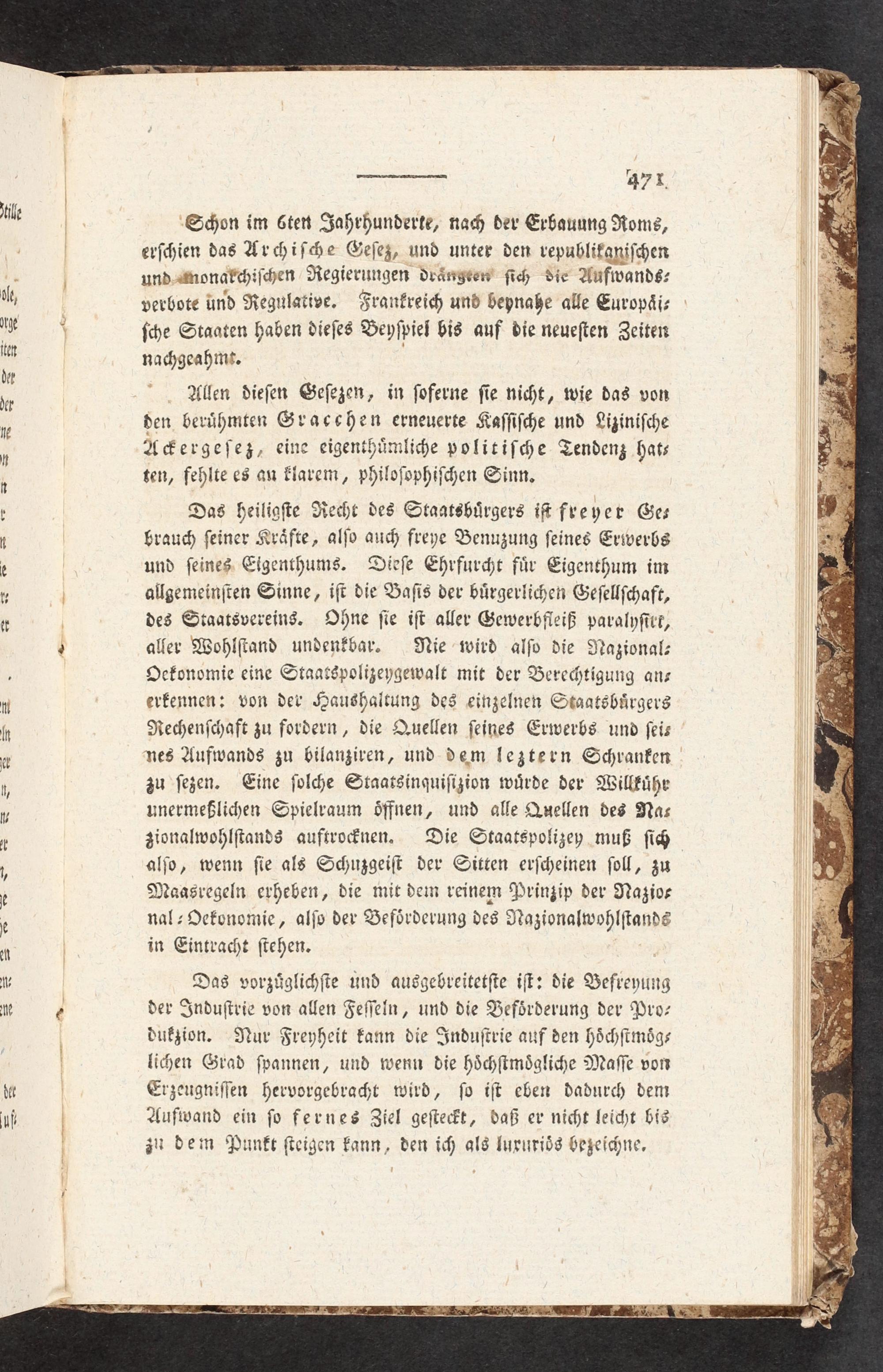 Das vorzuͤglichſte und ausgebreitetſte iſt: die Befreyung der Induſtrie von allen Feſſeln, und die Befoͤrderung der Pro⸗ dukzion. Nur Freyheit kann die Induſtrie auf den hoͤchſtmoͤg⸗ lichen Grad ſpannen, und wenn die hoͤchſtmoͤgliche Maſſe von Erzeugniſſen hervorgebracht wird, ſo iſt eben dadurch dem Aufwand ein ſo fernes Ziel geſteckt, daß er nicht leicht bis zu dem Punkt ſteigen kann, den ich als lururioͤs bezeichne.