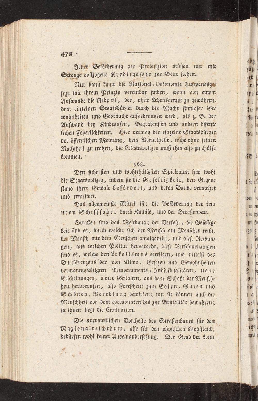 Straßen ſind das Weltband; der Verkehr, die Geſellig⸗ keit ſind es, durch welche ſich der Menſch am Menſchen reibt, der Menſch mit dem Menſchen amalgamirt, und dieſe Reibun⸗ gen, aus welchen Politur hervorgeht, dieſe Verſchmelzungen ſind es, welche den Lokalismus vertilgen, und mittelſt des Durchkreuzens der von Klima, Geſezen und Gewohnheiten vermannigfaltigten Temperaments⸗Individualitaͤten, neue Erſcheinungen, neue Geſtalten, aus dem Schoße der Menſch⸗ heit hervorrufen, alſo Fortſchritt zum Edlen, Guten und Schoͤnen, Veredlung bewirken; nur ſie koͤnnen auch die