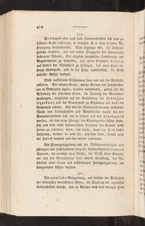 571. Die peinliche Geſezgebung, auf welcher die Sicherheit der wichtigſten menſchlichen Guͤter, die Zuͤgelung der regelloſen Leidenſchaften beruht, hat in Europa noch weit weniger Fort⸗