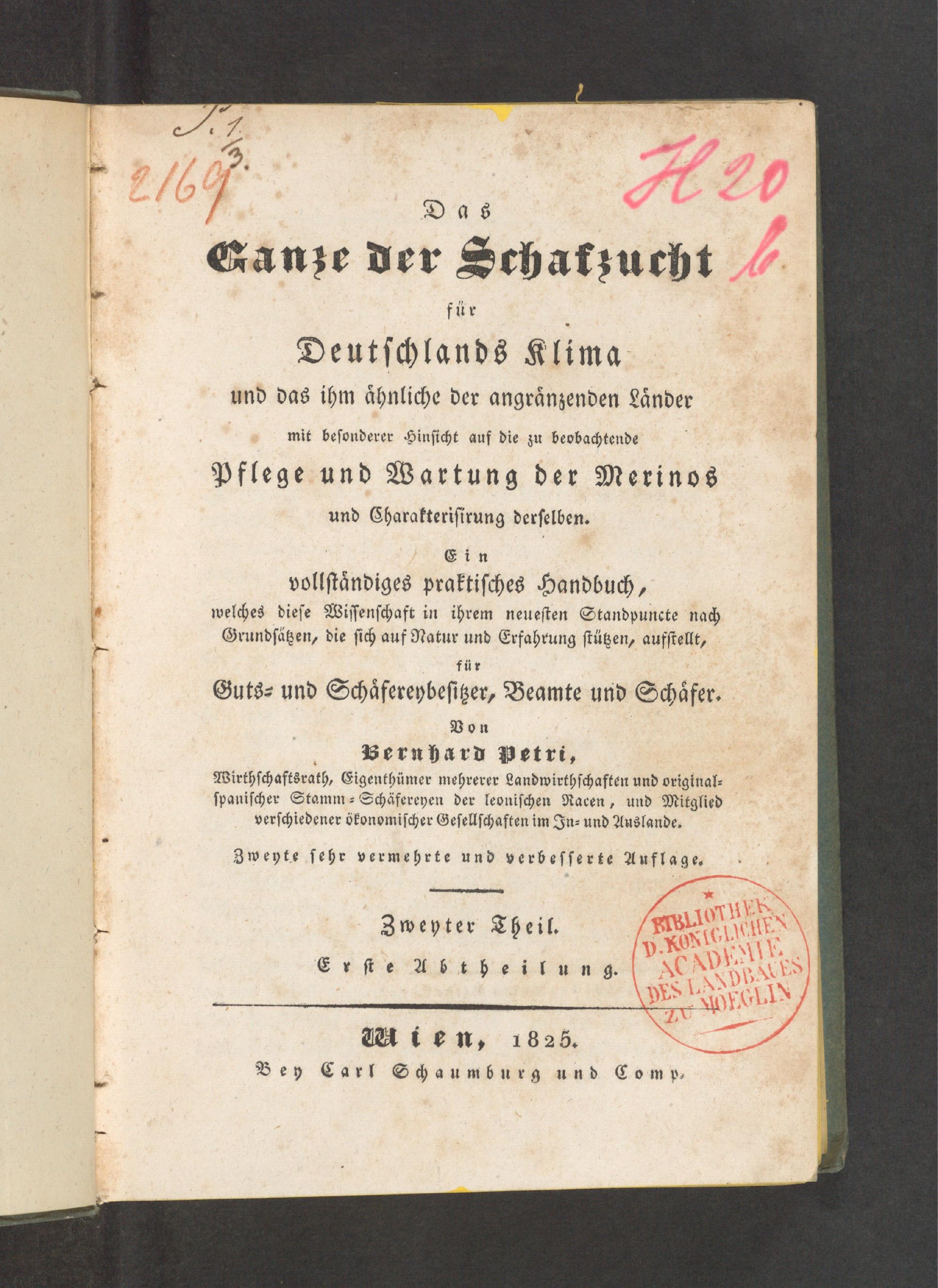 Ein vollſtaͤndiges praktiſches Handbuch, welches dieſe Wiſſenſchaft in ihrem neueſten Standpuncte nach Grundſätzen, die ſich auf Natur und Erfahrung ſtützen, aufſtellt, für Guts⸗ und Schaͤfereybeſitzer, Beamte und Schaͤfer. Von