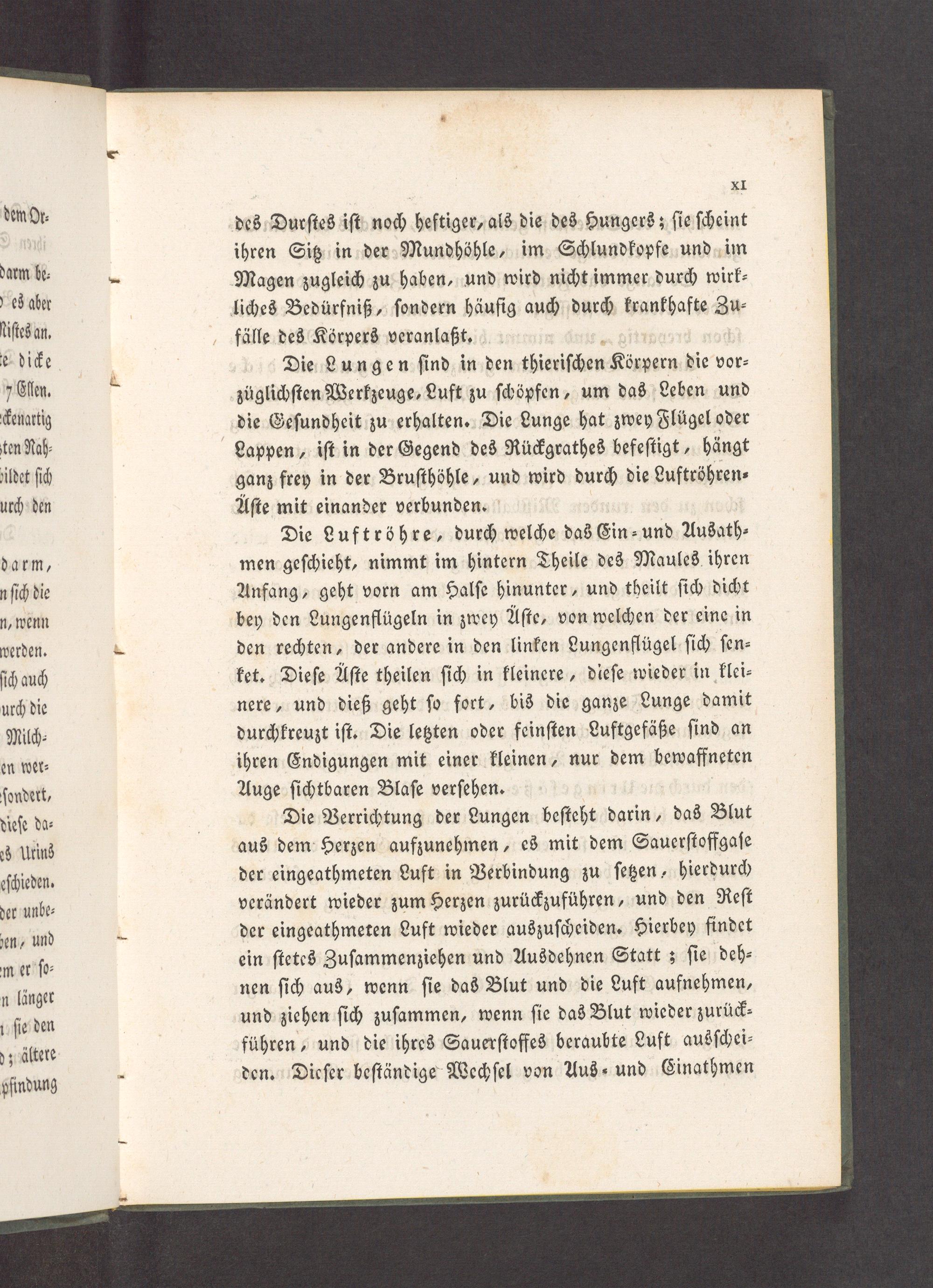 Die Lungen ſind in den thieriſchen Körpern die vor⸗ züglichſten Werkzeuge, Luft zu ſchöpfen, um das Leben und die Geſundheit zu erhalten. Die Lunge hat zwey Flügel oder Lappen, iſt in der Gegend des Rückgrathes befeſtigt, hängt ganz frey in der Bruſthöhle, und wird durch die Luftröhren⸗ Aſte mit einander verbunden.