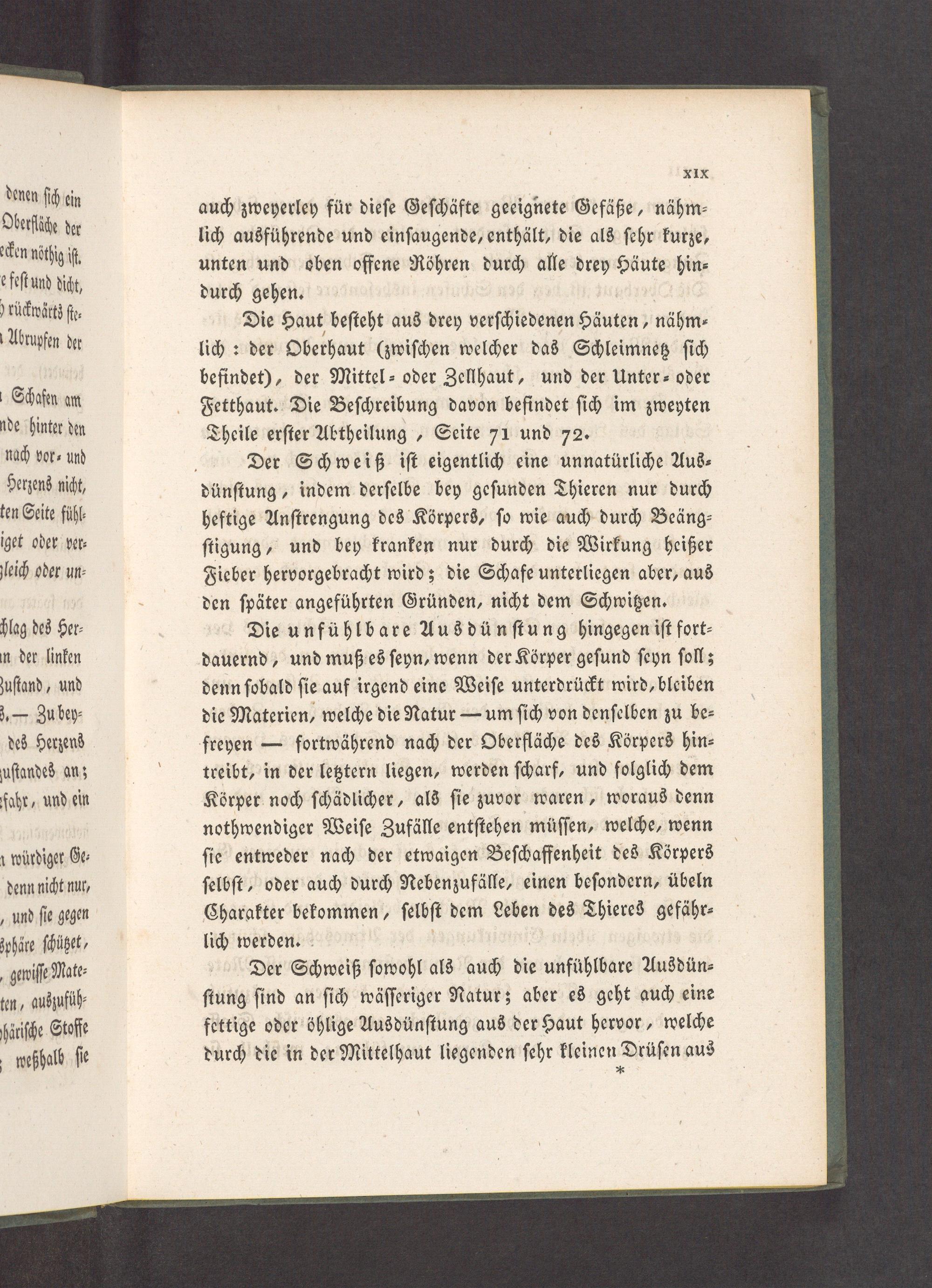 Die Haut beſteht aus drey verſchiedenen Häuten, nähm⸗ lich: der Oberhaut(zwiſchen welcher das Schleimnetz ſich befindet), der Mittel⸗ oder Zellhaut, und der Unter⸗oder Fetthaut. Die Beſchreibung davon befindet ſich im zweyten Theile erſter Abtheilung, Seite 71 und 72.