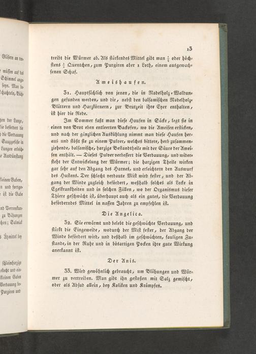 33. Wird gewöhnlich gebraucht, um Blähungen und Wür⸗ mer zu vertreiben. Man gibt ihn geſtoßen mit Salz gemiſcht, oder als Abſud allein, bey Koliken und Krämpfen.