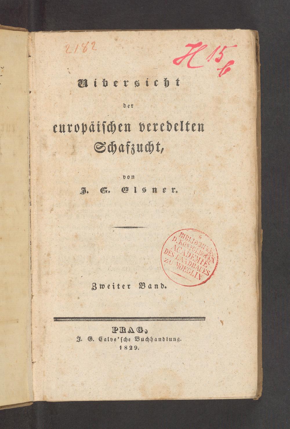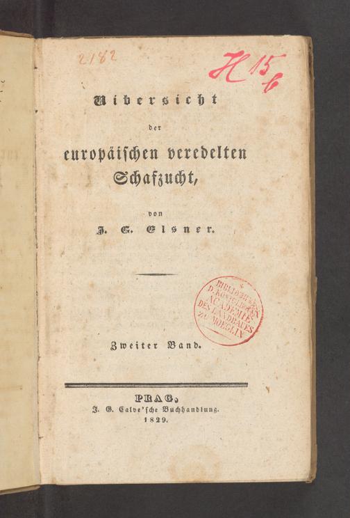 aibersicht der europäiſchen veredelten Schafzucht, von J. E. Elsner. Zweiter Band. J. G. Calve'ſche Buchhandlung. 1829.