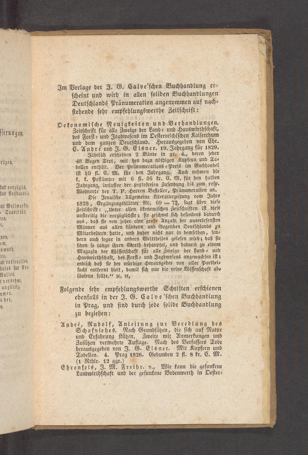 Zeitſchrift für alle Zweige der Land⸗ und Hauswirthſchaft, des Forſt⸗ und Jagdweſens im Oeſterreichiſchen Kaiſerthum und dem ganzen Deutſchland. Herausgegeben von Chr. C. André und J. G. Elsner. 19. Jahrgang für 1829.